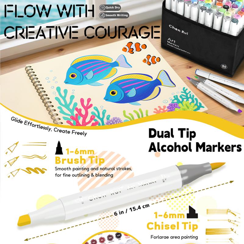 DUAL TIP (Chisel and Brush Tip): The Art Markers have dual-tip design. A brush tip for coloring and painting, a wide chisel tip for large areas drawing.