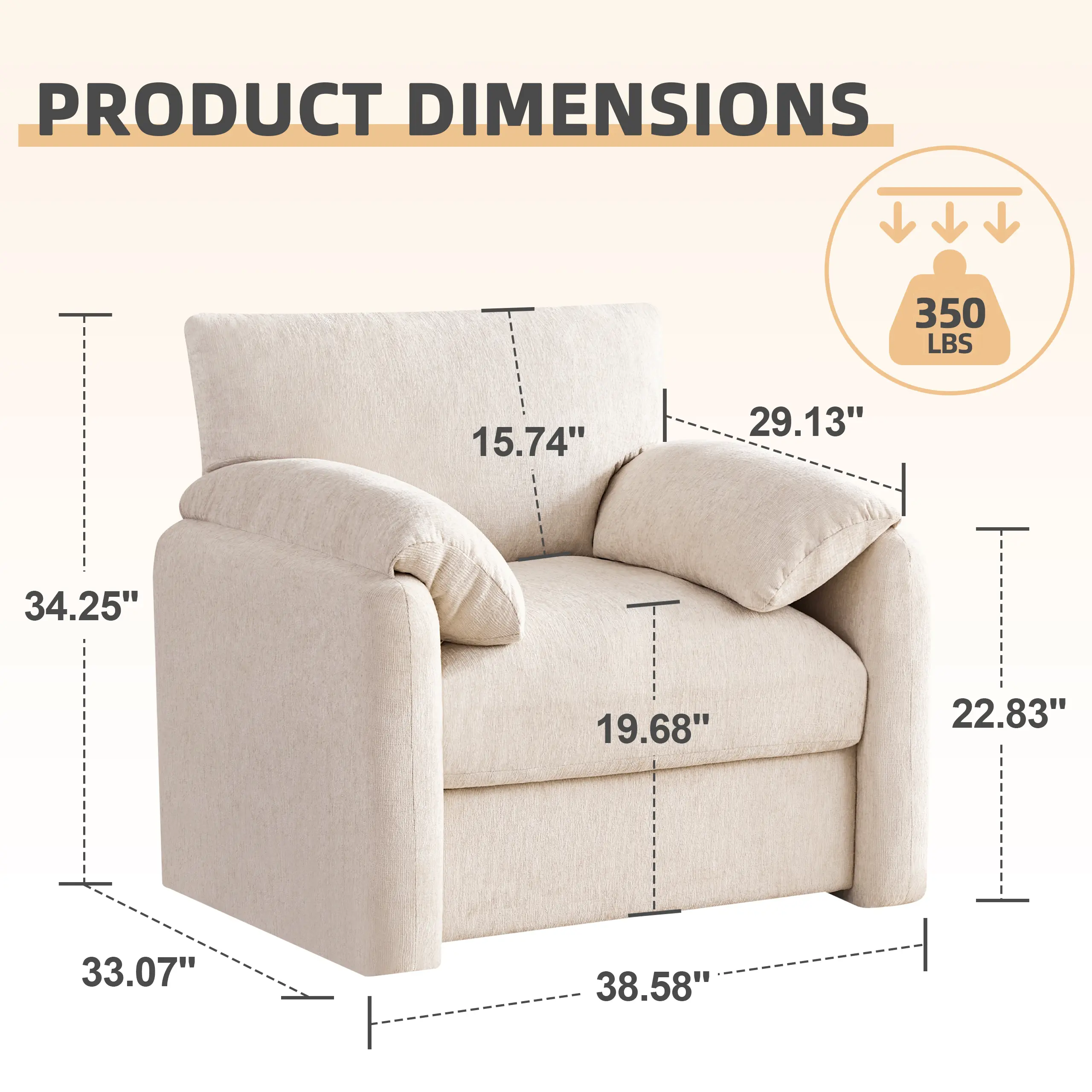 ·Perfect Size: Measuring 38.58" W x 33.07" D x 34.25" H with a seat size of 20.5" W x 20.5" D, this modern accent chair accommodates various body types comfortably. It supports up to 400 lbs, offering a stable and spacious seating option for users