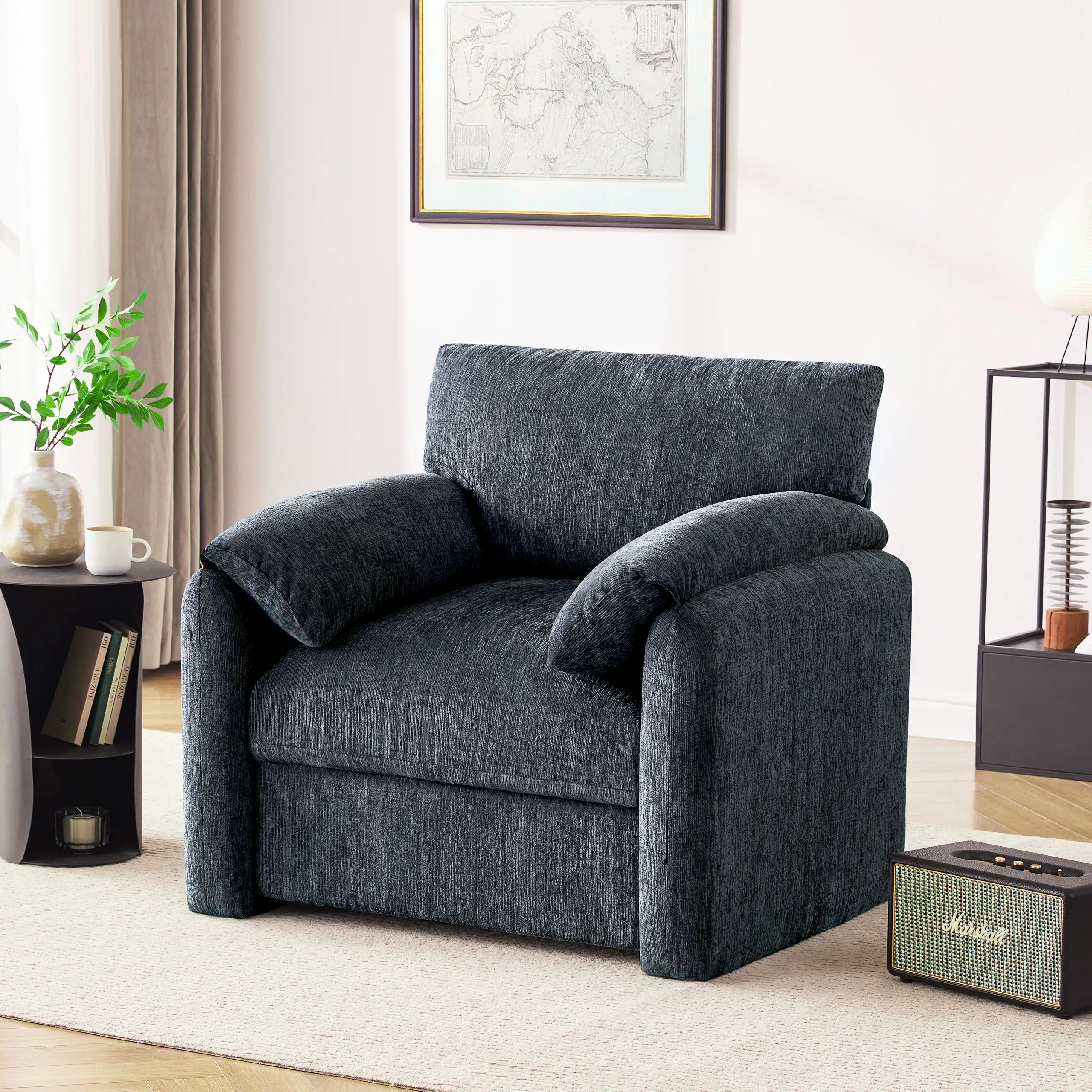 ·Premium Materials: Upholstered in soft chenille fabric, this armchair features a foam-filled backrest and seat cushion made with high-density foam and quality springs. This combination enhances comfort and helps alleviate fatigue from prolonged sitting