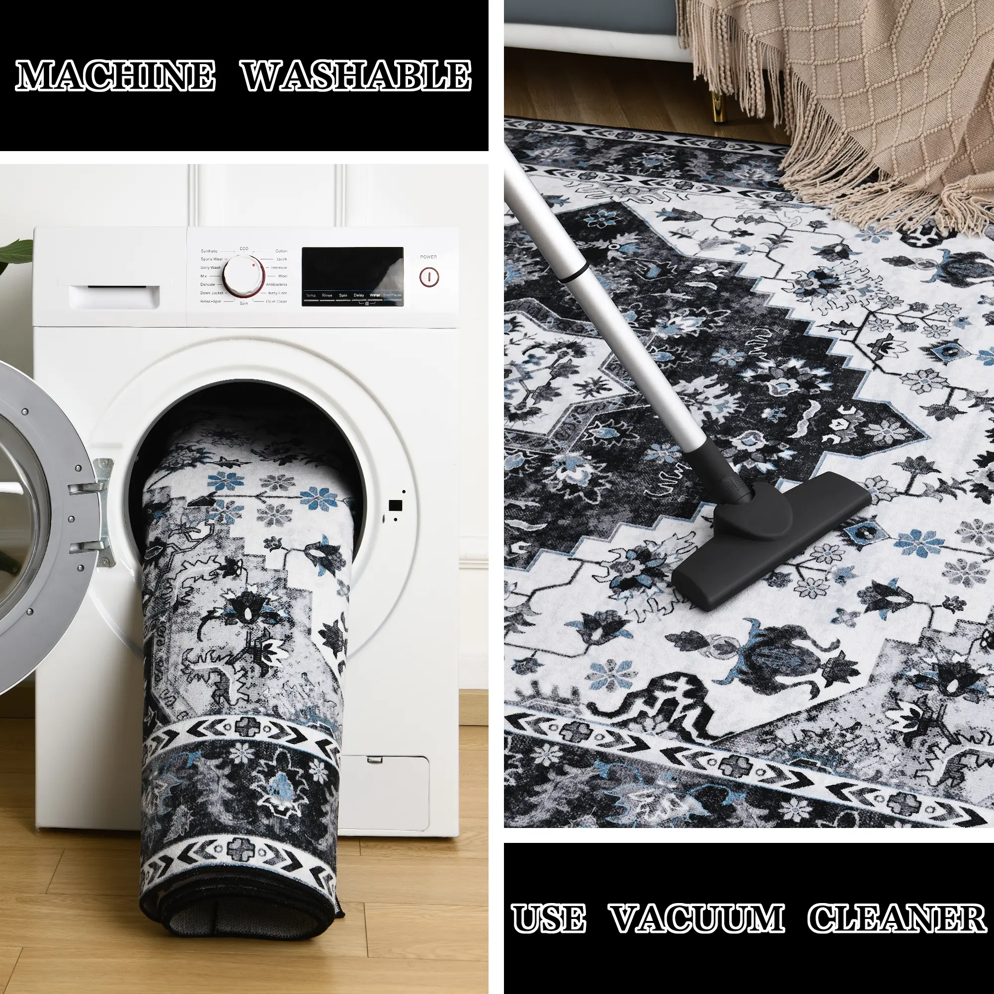 ·Easy Maintenance: The rugs are ease of maintenance. They are simple to clean. Regular vacuuming keeps the rug looking fresh, while any spills or accidents can be gently blotted away with a damp cloth.