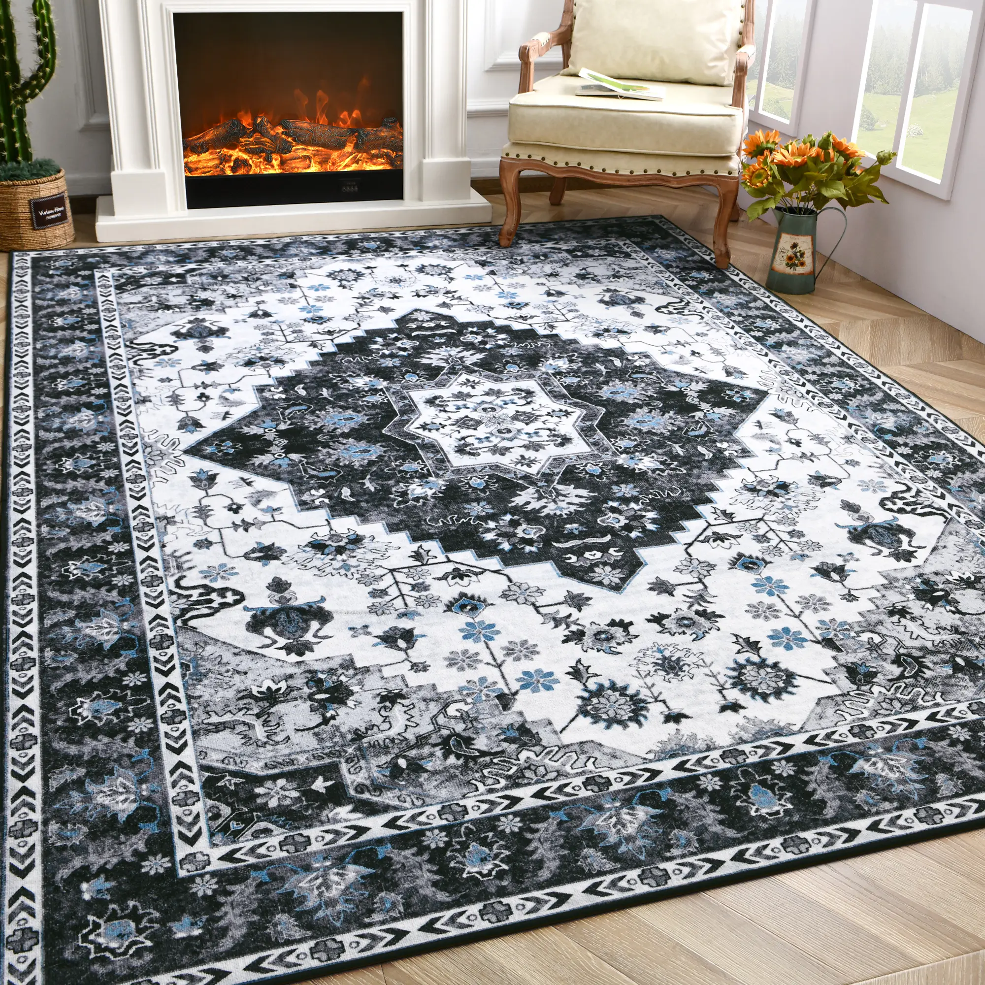 ·Versatile Décor Accent: This rug is a versatile décor accent that can seamlessly integrate into a wide range of interior design styles. Whether your home is traditional, contemporary, or somewhere in between, the vintage charm and timeless appeal of the floral print will complement your existing furnishings. It's an easy and stylish way to elevate your décor and create a welcoming ambiance.