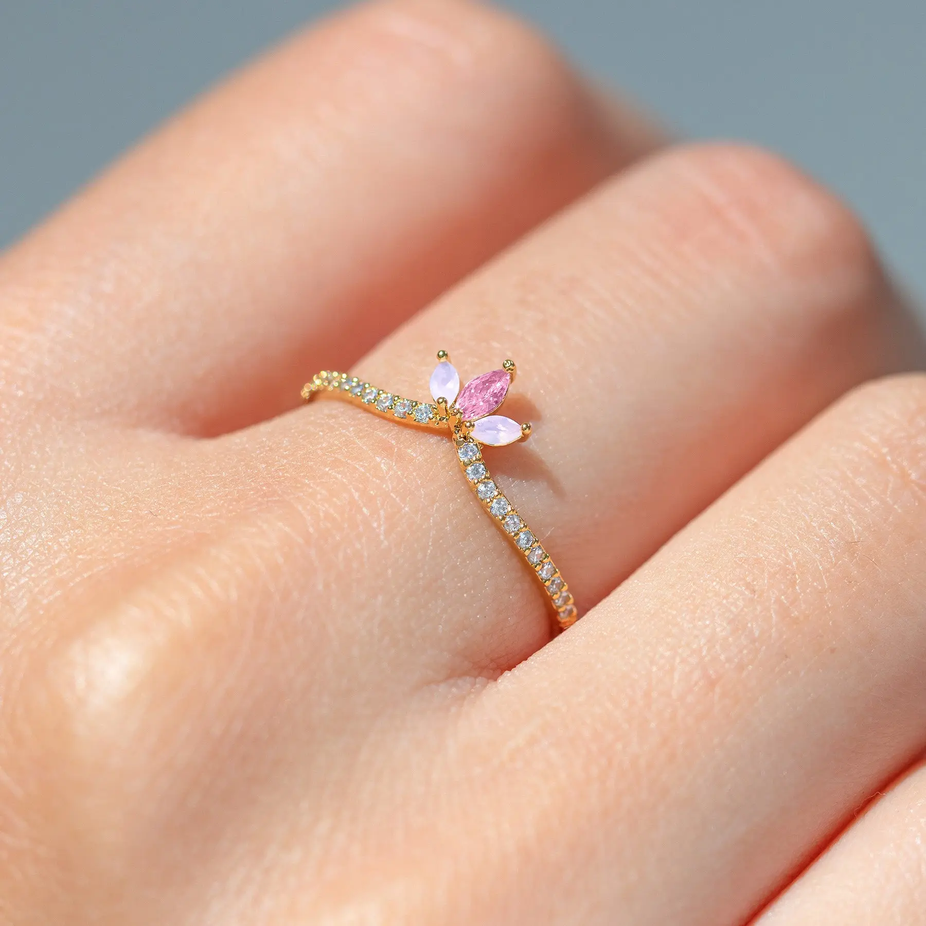 Our Cherry Blossom Ring resembles a flower blooming in spring, with dazzling crystals sprouting up from a shimmering pave band. This is the perfect way to celebrate the sunny days ahead.