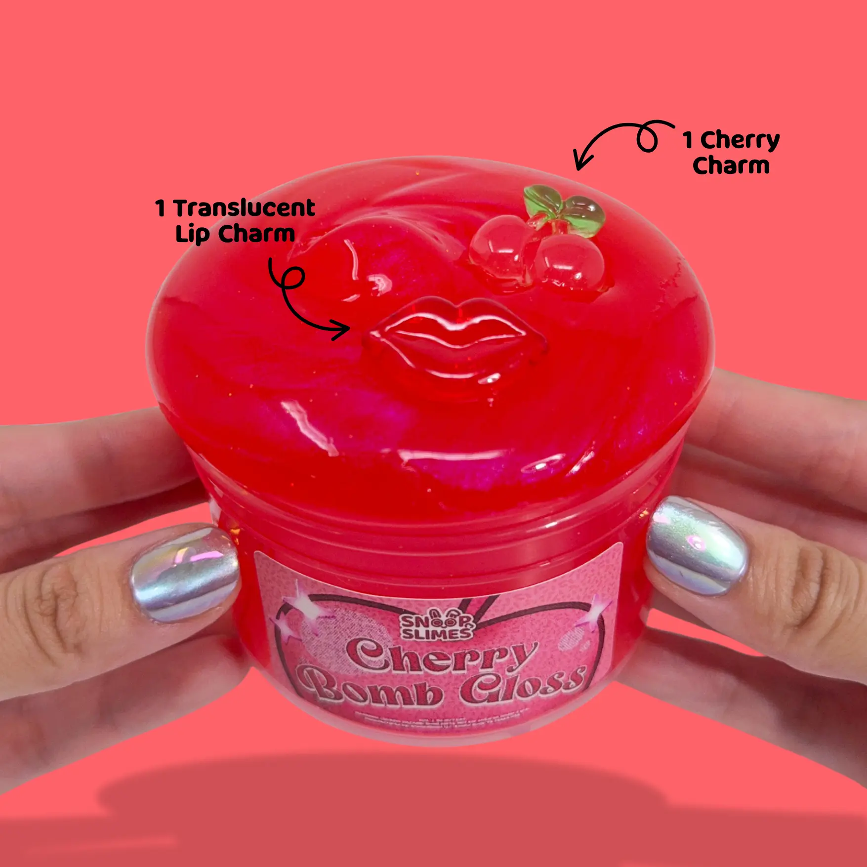 What’s Included: 6oz Cherry Bomb Metallic Slime Base 1 Cherry Charm 1 Translucent LIp Charm