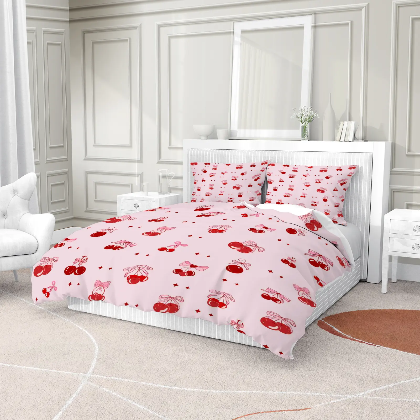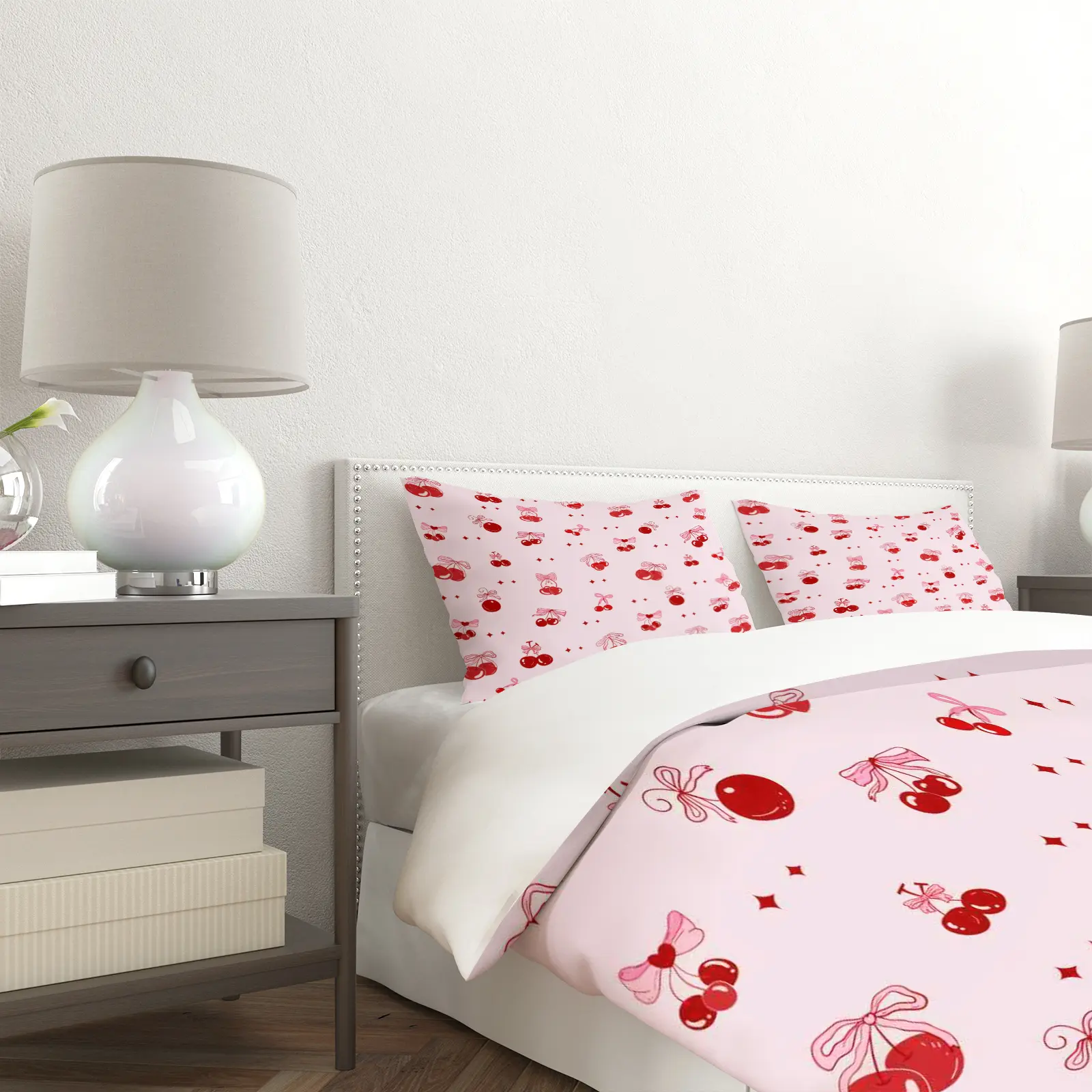 【Cherry Bow Pattern】: Features a unique cherry bow motif, setting this bedding set apart from typical designs in the market.
