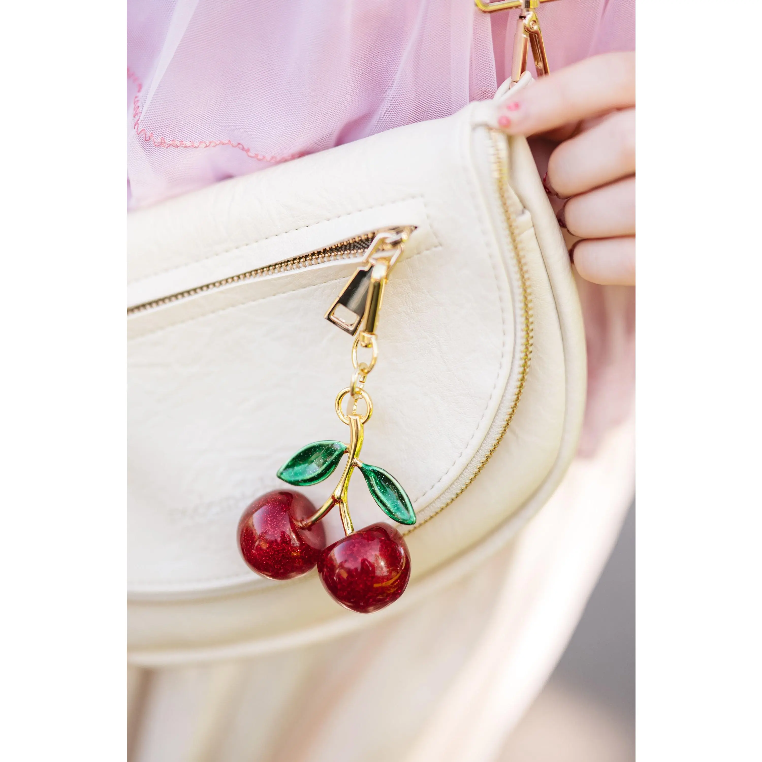 Sweet with a modern sparkle, the Cherry Charm adds a playful touch that feels both flirty and refined. With glittering red cherries and golden accents, it captures that perfect blend of bold, feminine, and nostalgic charm.
