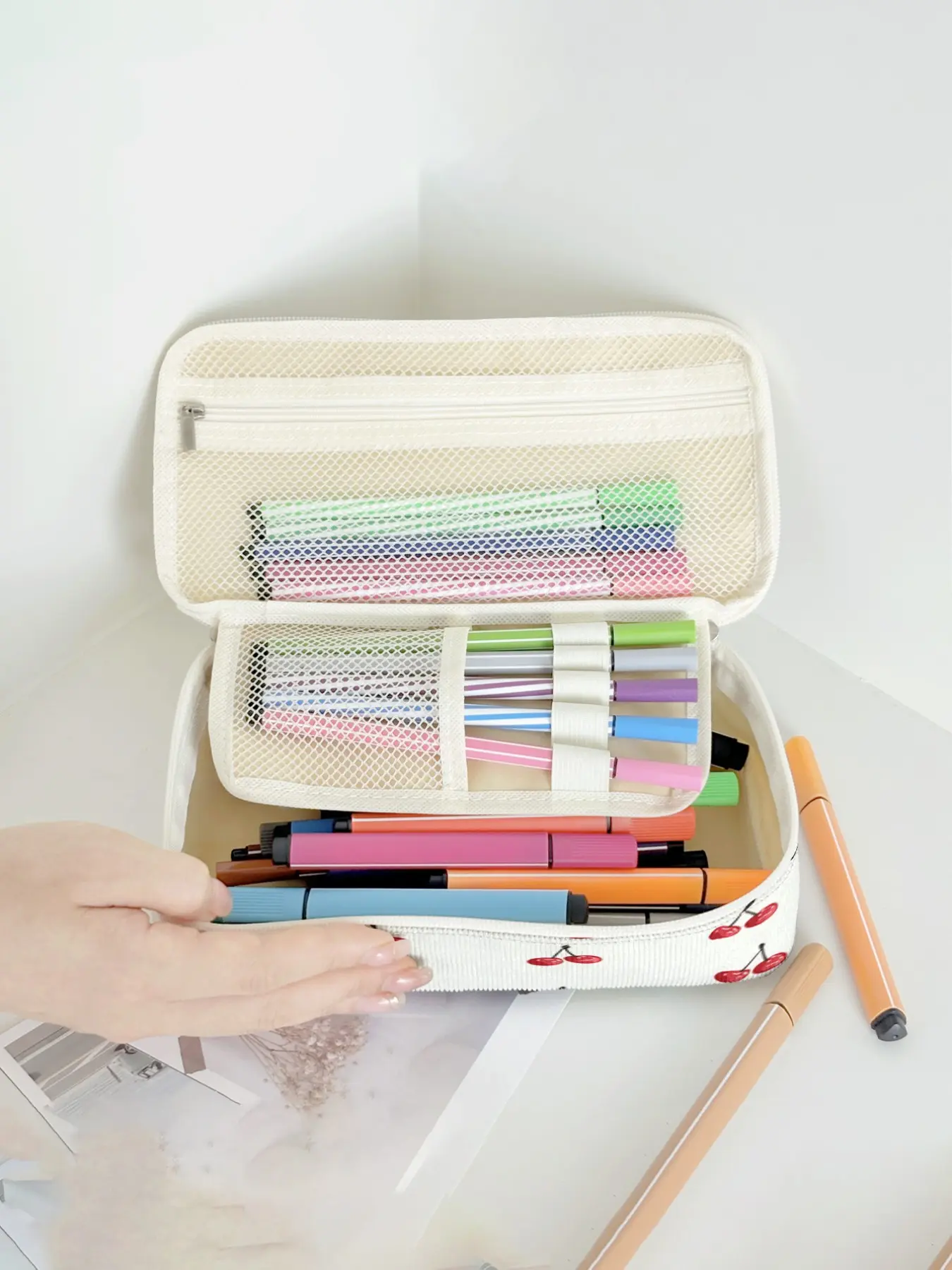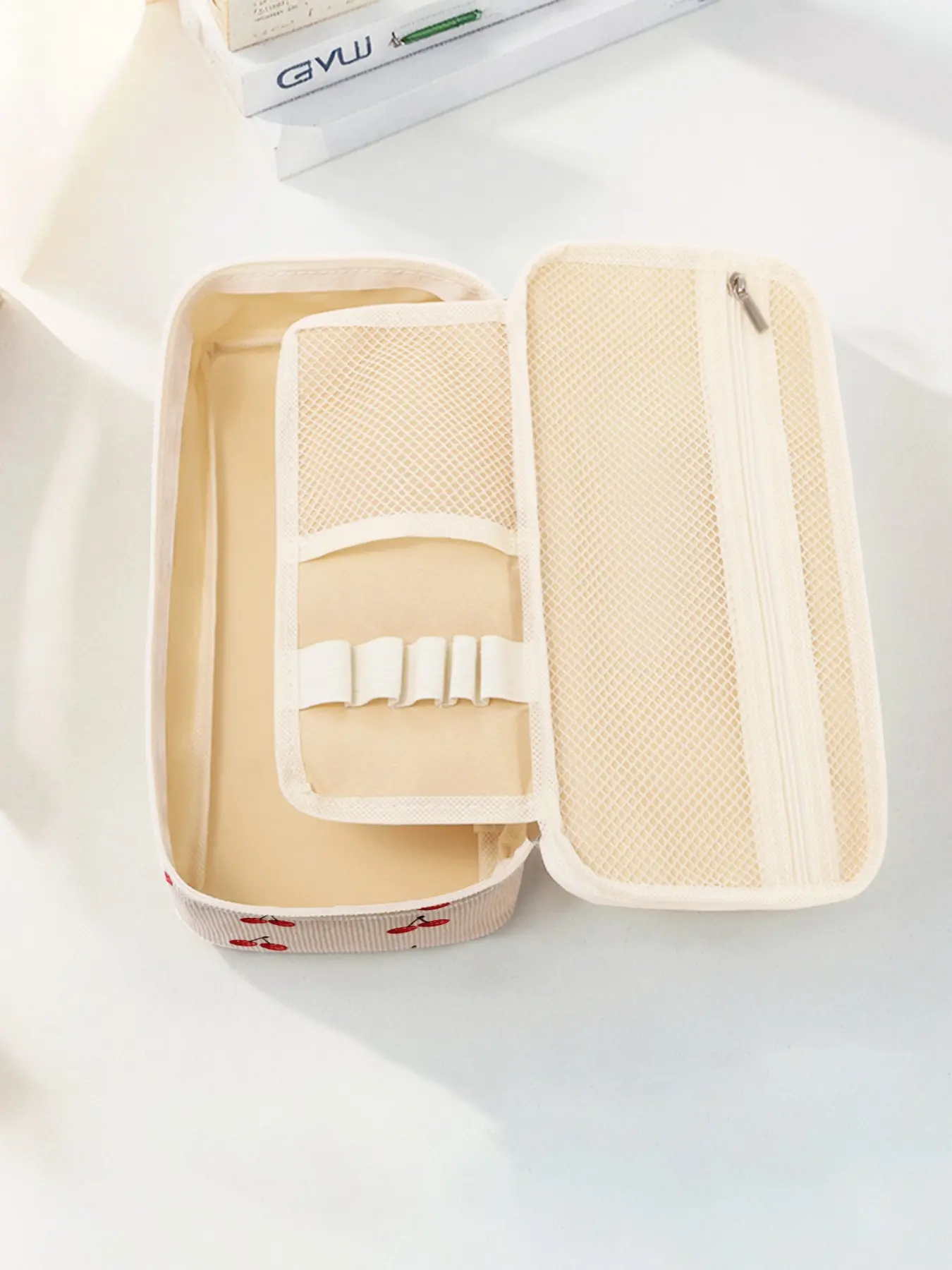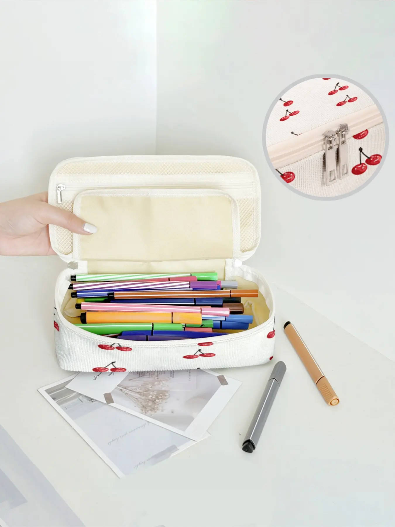 【Unique Pattern】: Featuring a cherry pattern print, this pencil case adds a touch of charm to your belongings.