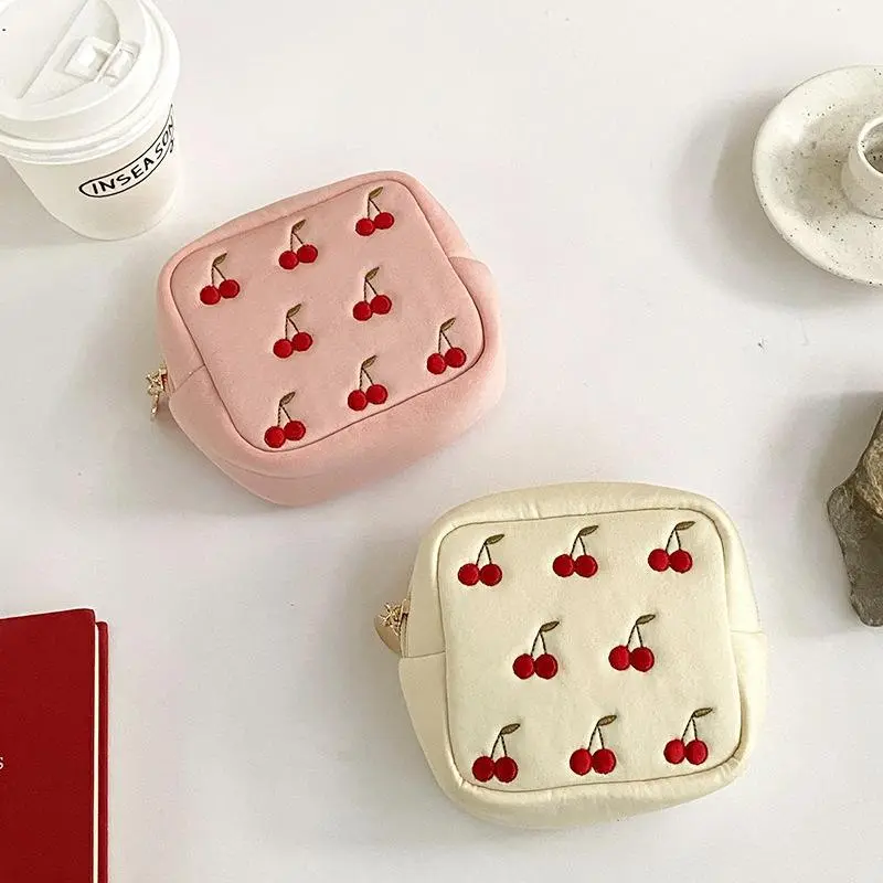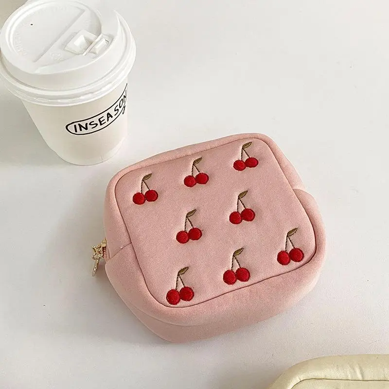 Cherry Pattern Storage Bag, 1 Count Portable Multifunctional Napkin Pouch Bag, Jewelry & Skincare Product Organizer, Cosmetic Bag for Home, Office, and Travel