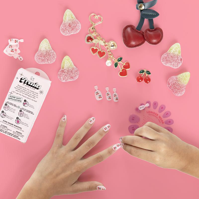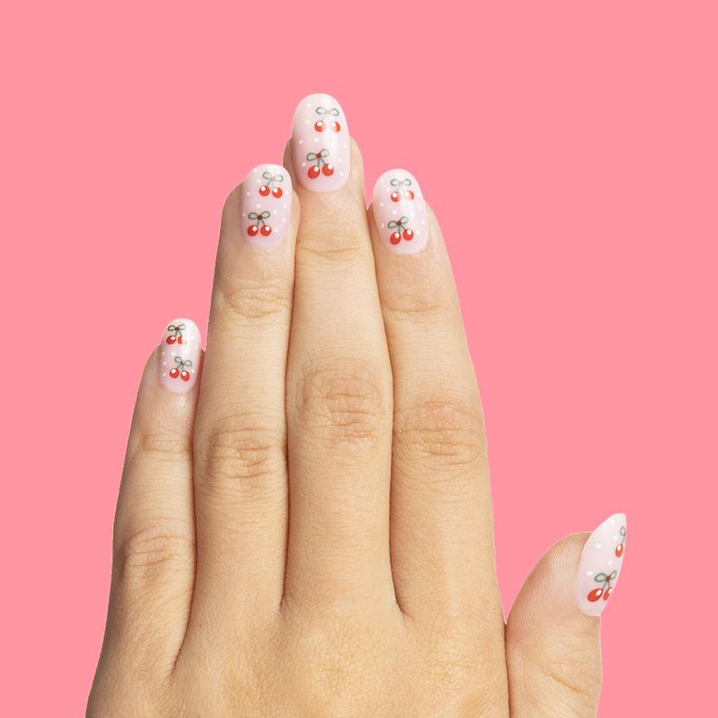 Take this pretty pastel pink mani topped with the cutest cheeky cherries for a whirl. Shirley Temples for everyone!Made just for kids and tweens.