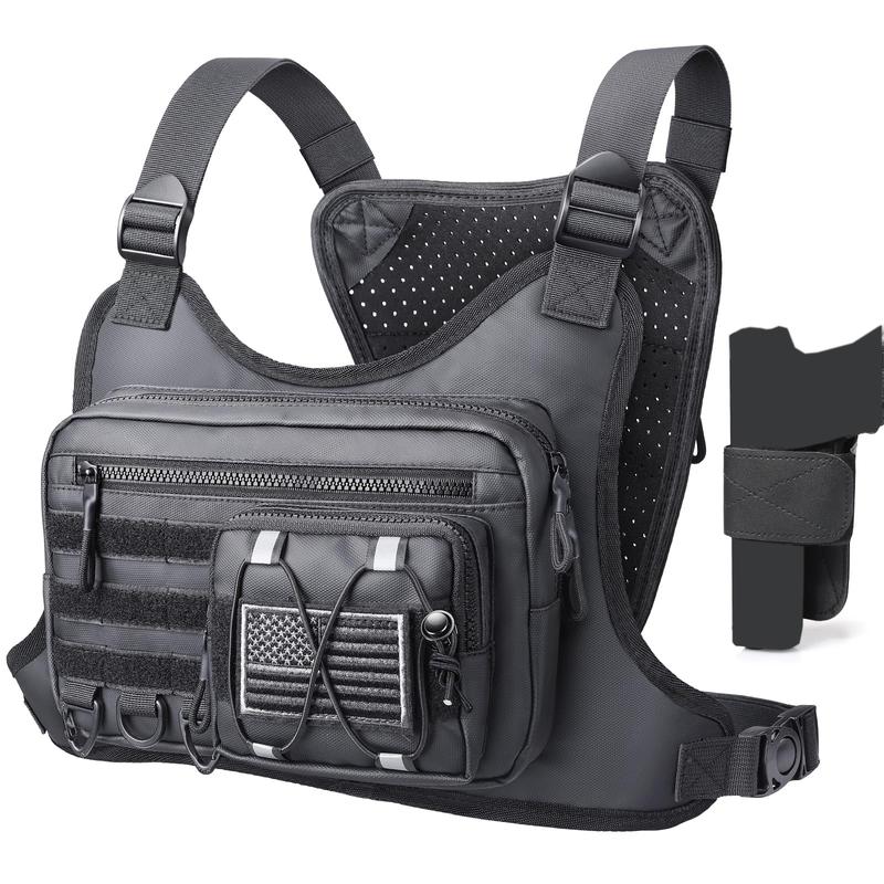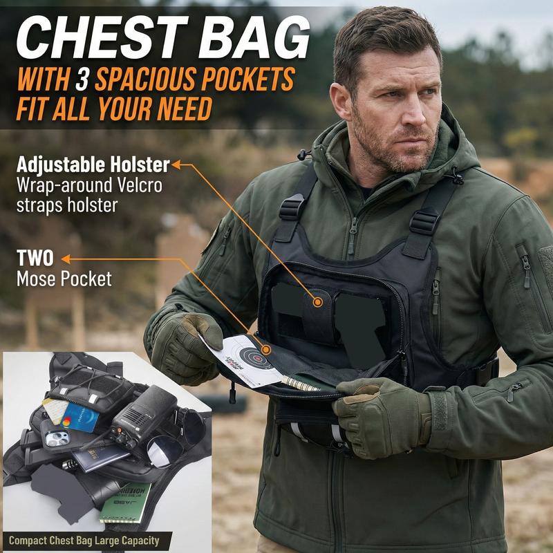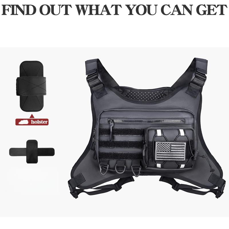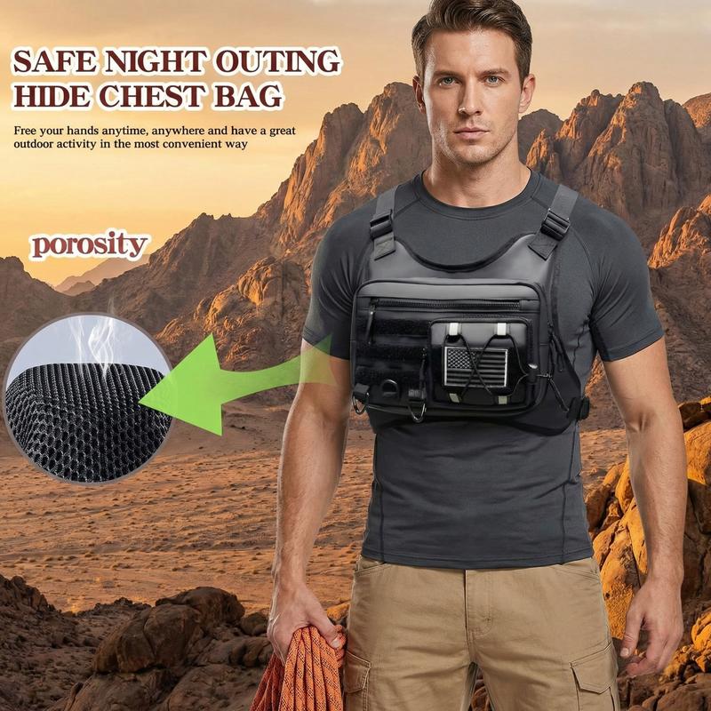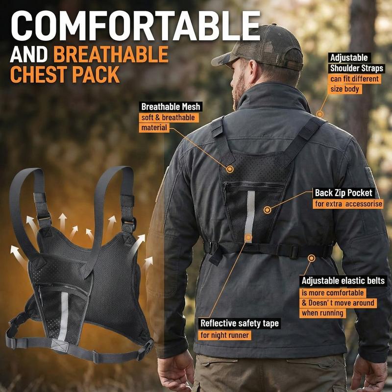 Durable & Outdoor Friendly: Chest pack is made of premium polyester fabric that is durable, water-resistant and dust-resistant. Outdoor Chest bag rig keep your belongings dry during outdoor activities, running and hiking. Heavy-duty construction keep cell phones, EDC tools, headphones, and other devices safe during outdoor adventures or camping.
