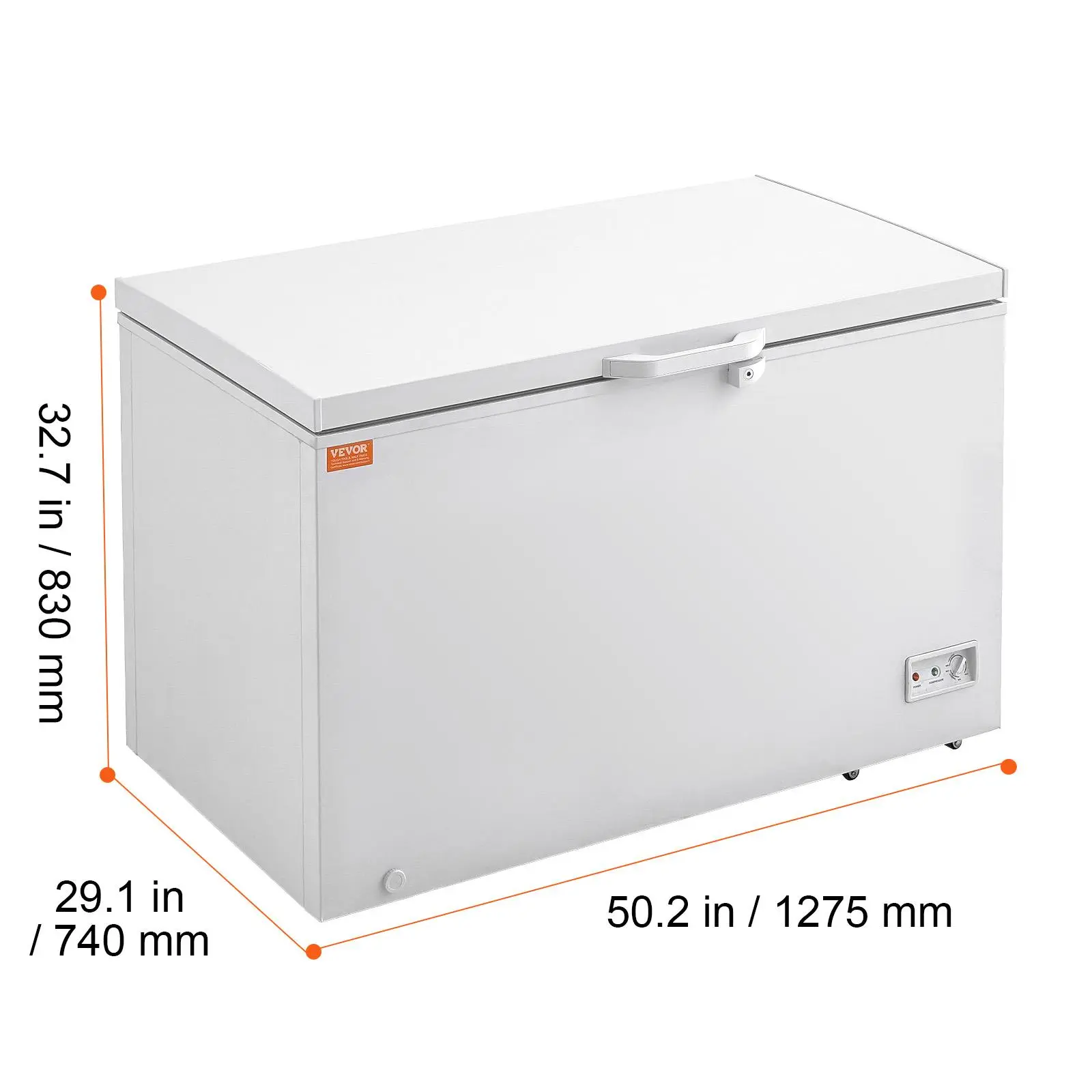 • 12.8 Cu.ft Capacity with 4 Baskets: VEVOR chest freezer boasts a generous 12.8 cu.ft / 345 L capacity, complete with 4 convenient baskets. Whether it's bulky items like turkeys, ribs, and pizzas, or smaller essentials, you'll have plenty of space to keep everything organized and accessible. Additionally, we provide a handy shovel for effortless defrosting.
