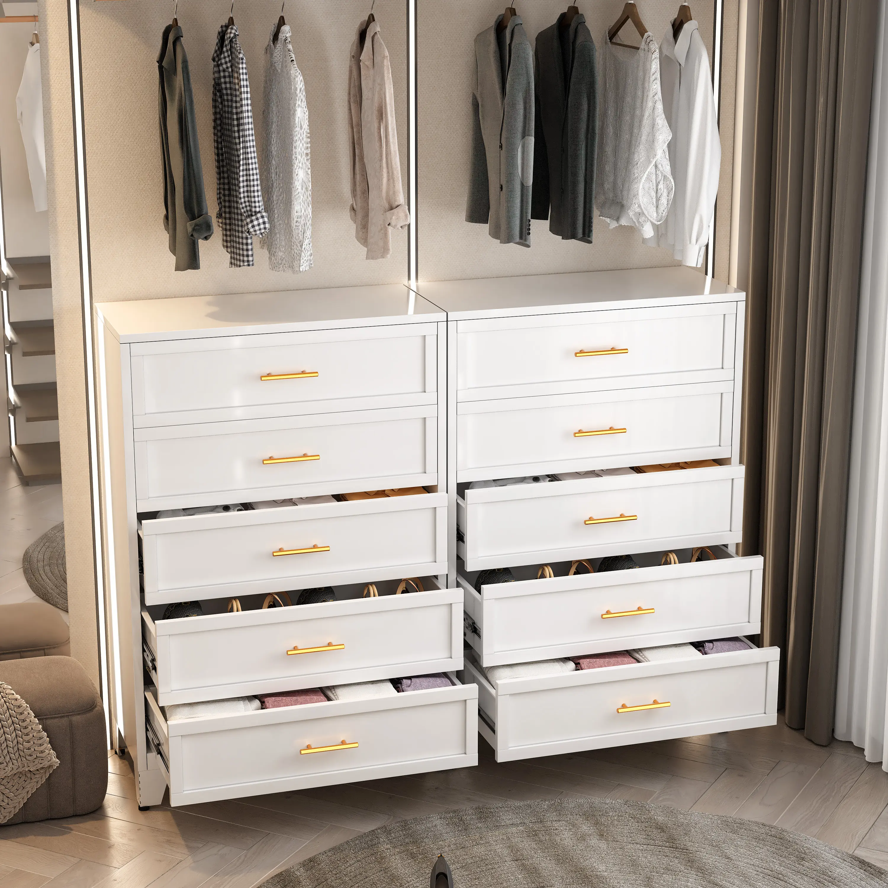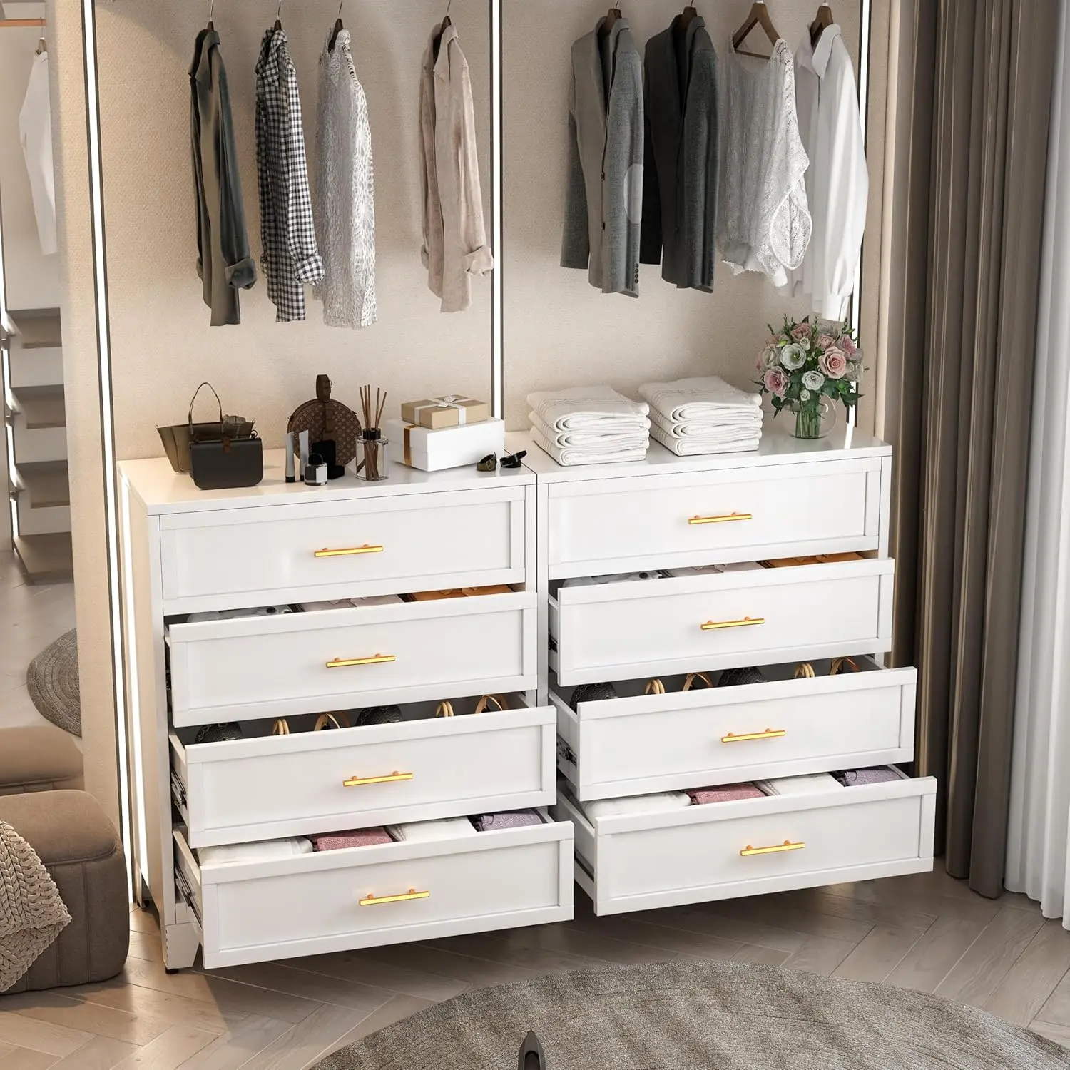 【Smart Organization】 Multi-layer drawer compartments categorize clothing, accessories, and essentials, eliminating clutter.