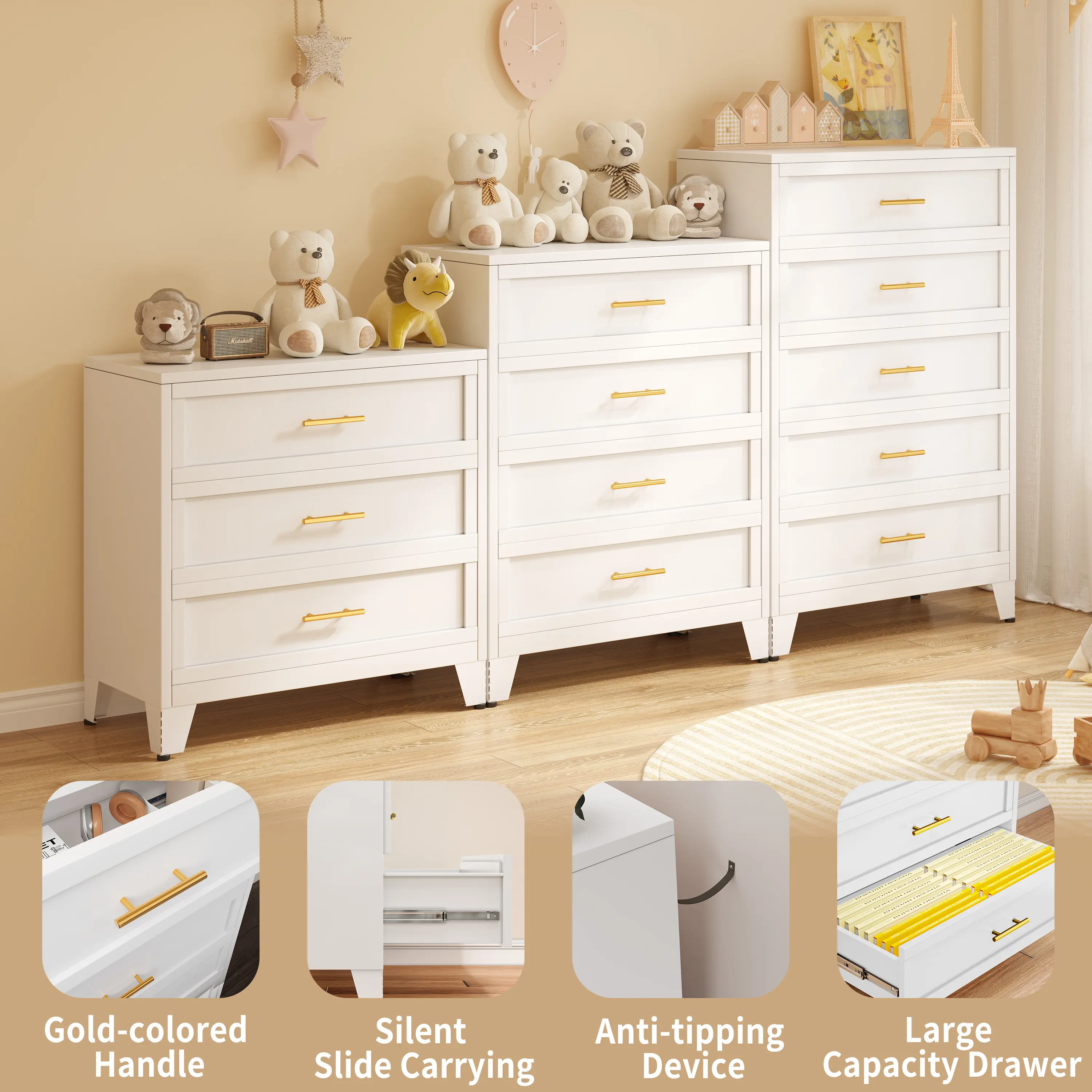 【Premium Metal Construction】 Crafted from high-strength metal, this drawer cabinet is durable and sturdy, suitable for bedrooms, closets, and various settings.