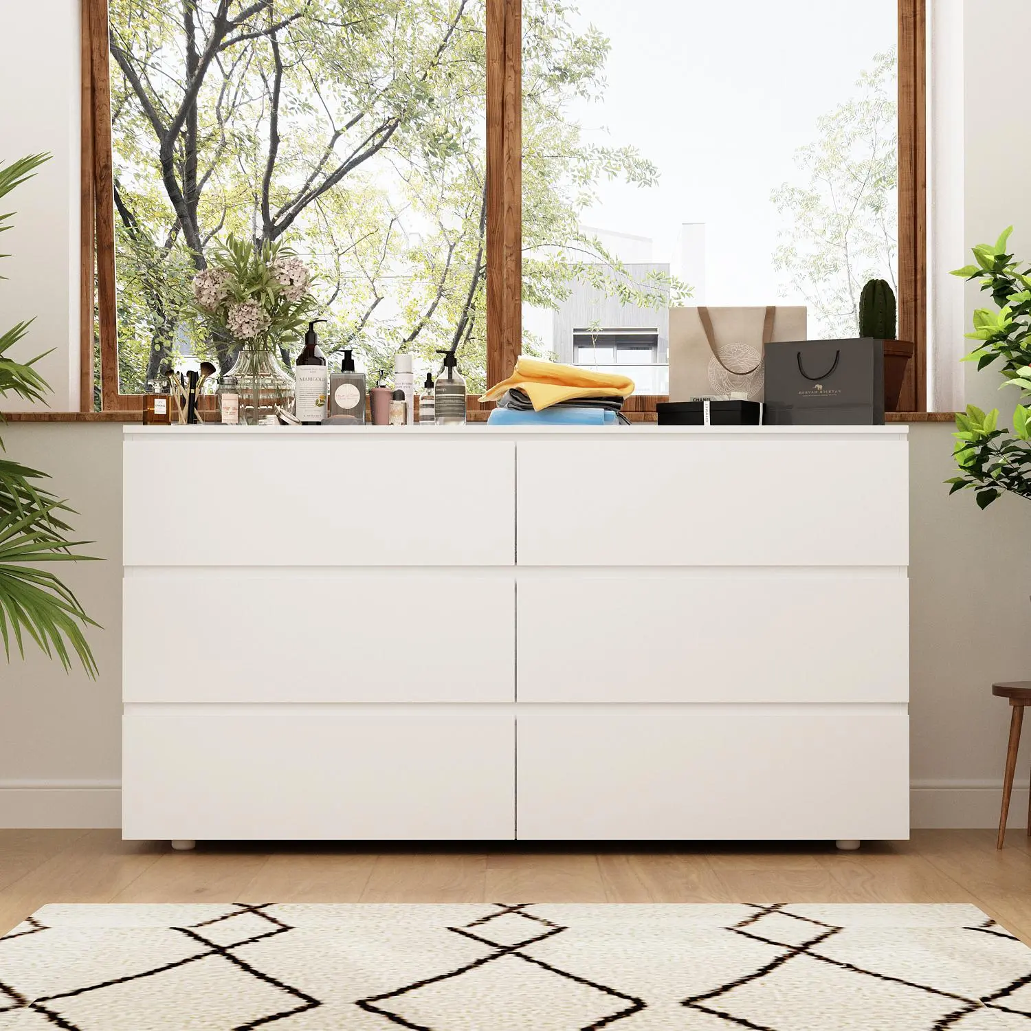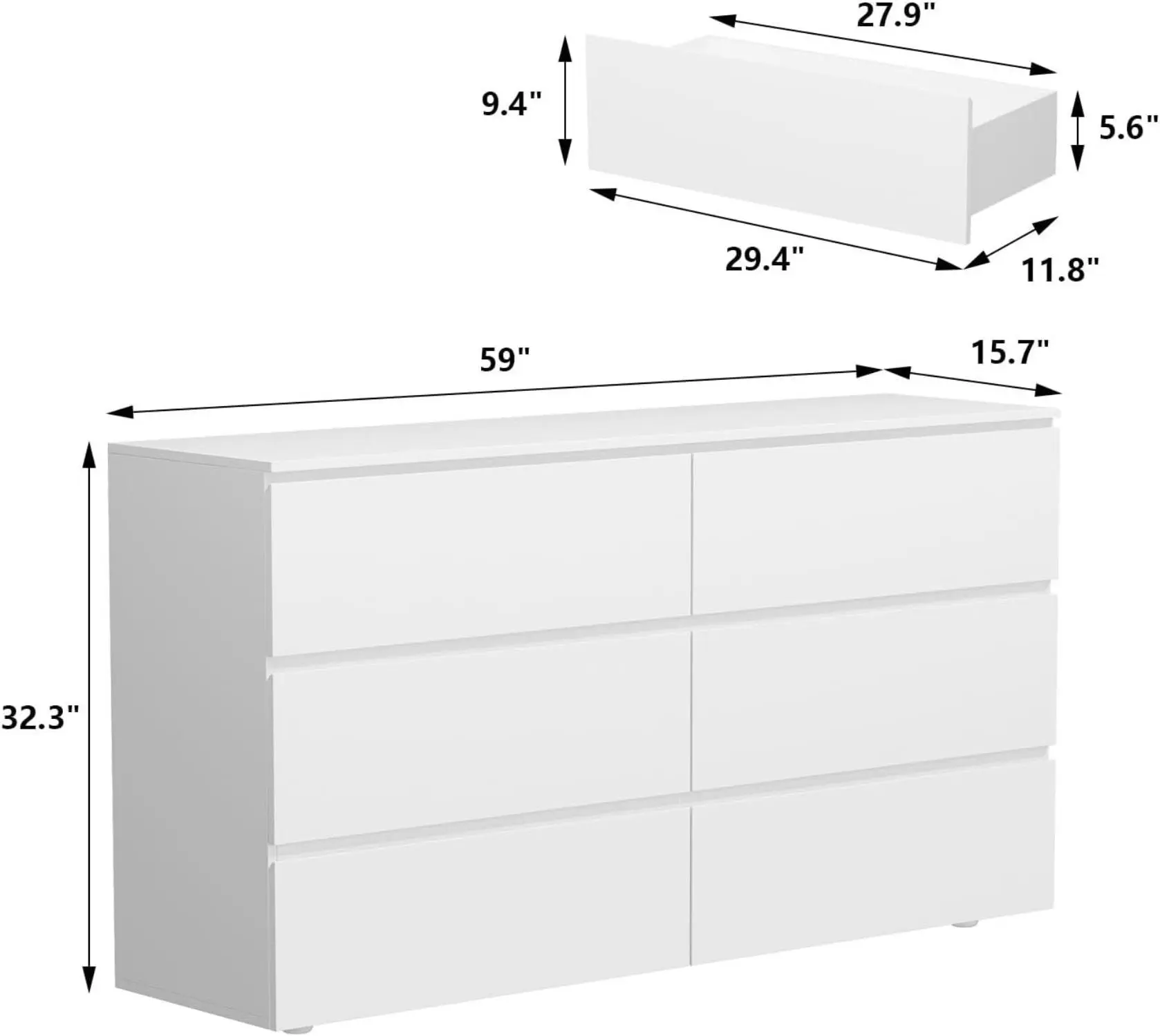 ·Ample Storage - There are 6 spacious drawers designed with no handles, each of which as a depth of 11.8 inches, providing enough storage space for your clothing, baby changing, decorations, and so on. The 59 inch tabletop gives you option to display your photo albums, potted plants or even TV set.