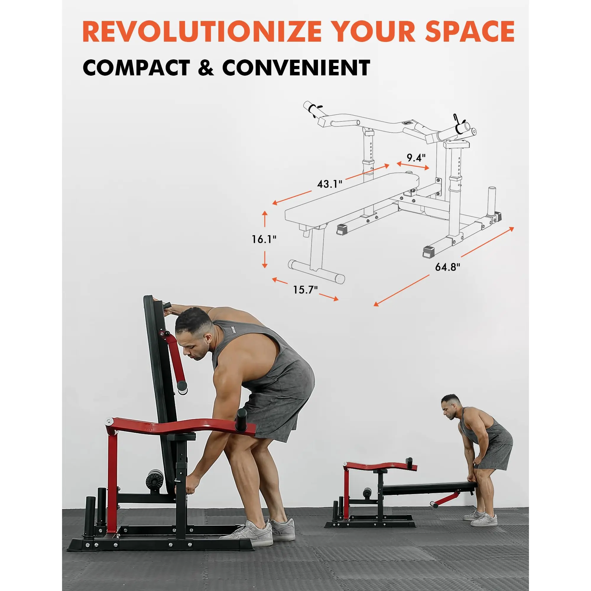 GMWD, a professional fitness brand, designs and manufactures top home gym equipment. For any questions, contact us. Our adjustable chest machine measures 64.8"(L)55.8"(W)26.8"(H), folding: 35.4"(L)30.5"(W)54"(H).