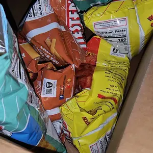 Box came improperly sealed and one of the bags were popped, chips are pretty good though.