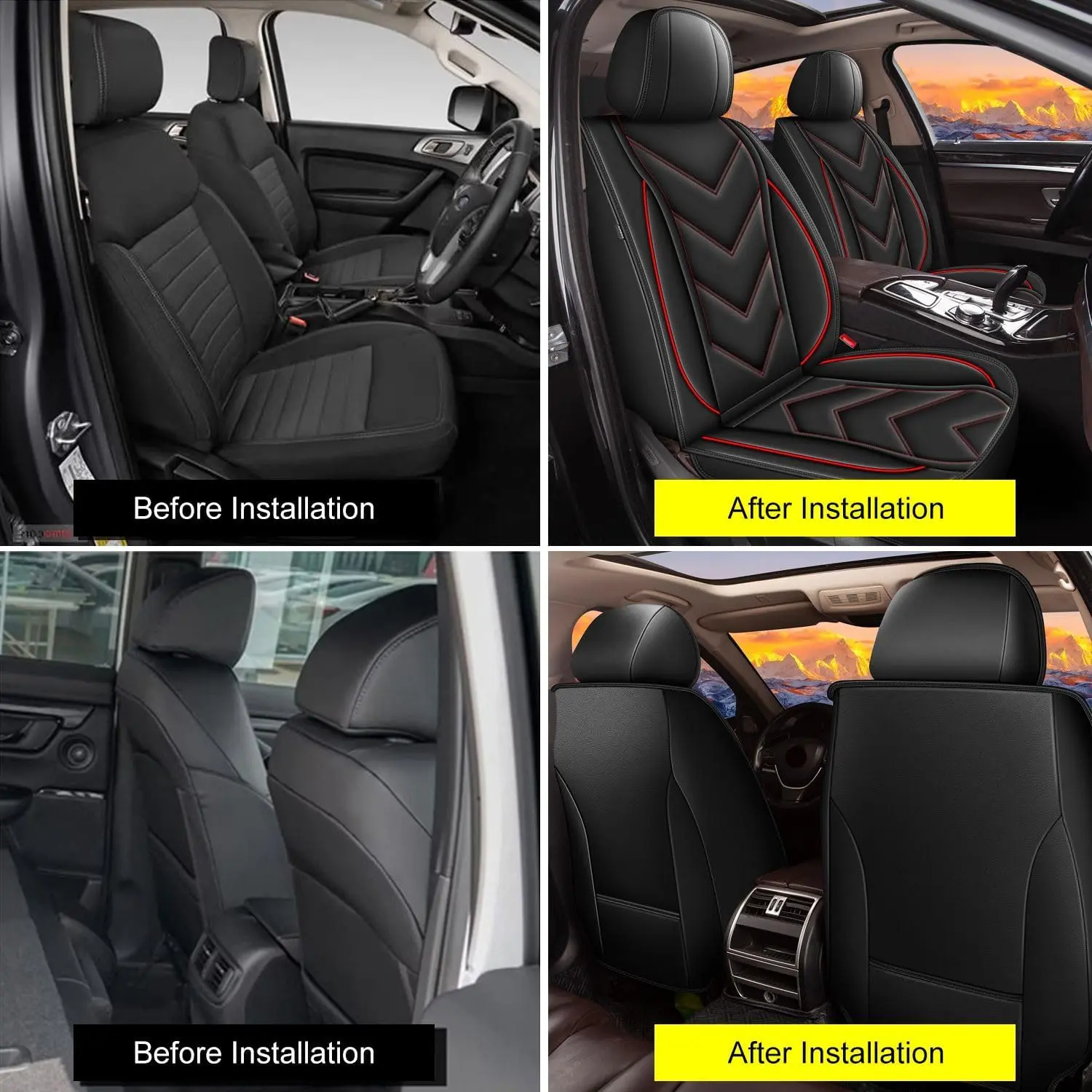 【High Quality Material】Car seat covers are made of high quality faux leather fabric, elastic cotton and composite fabric, which can be waterproof, anti-scratch, and easy to clean, and can protect your original cushion well. The synthetic leather seat covers is soft to the touch, which can make you feel more comfortable during long-distance driving.