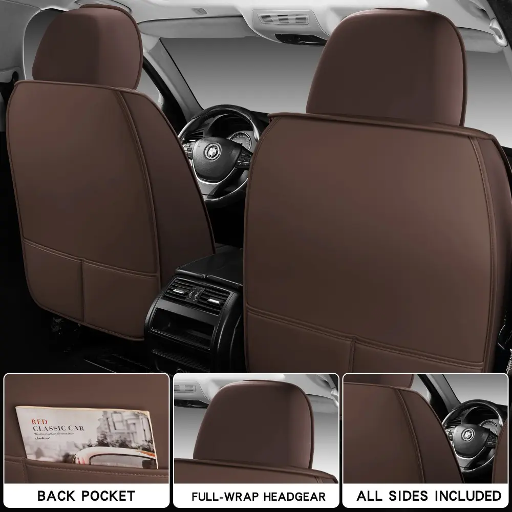 Elevate your vehicle's interior with these Napa PU Leather seat covers. The full surround design ensures comprehensive protection. Comes with a storage bag for easy handling. Perfect for 4-season use, these covers are breathable, non-slip, and waterproof.