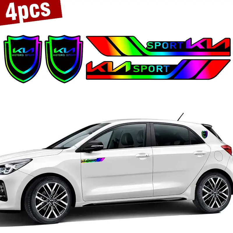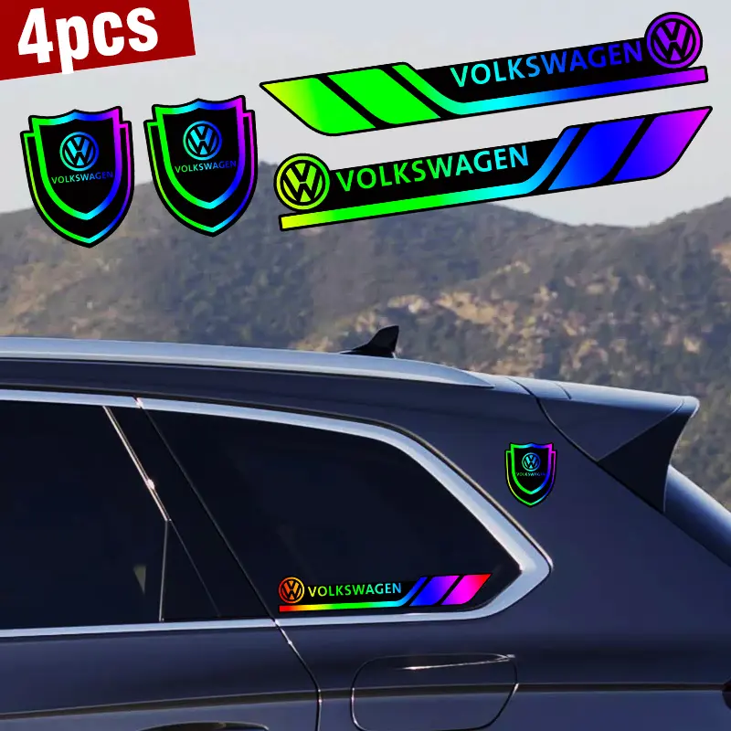 This vibrant gradient car sticker set is crafted from high-quality PC material. It's a unique statement piece for your vehicle. The smooth, flowing colors create a dreamy, ever-changing effect. From day to night, your car will dazzle with its unique magic. This set includes four pieces, measuring 2.6in x 3.2in each, weighing 20g. Perfect for car enthusiasts and fashion-forward drivers!