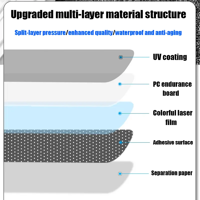 Unlike regular stickers, these use engineering-grade PC material. It offers excellent impact, wear, and weather resistance. The stickers resist yellowing, fading, and cracking. They withstand severe cold, heat, wind, and rain. This ensures your stickers last longer, maintaining their vibrant look.