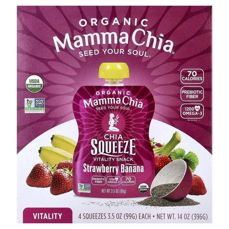 Mamma Chia Organic Chia Squeeze® Vitality Snack, Strawberry Banana, 4 Pack, 3.5 oz (99 g) Each