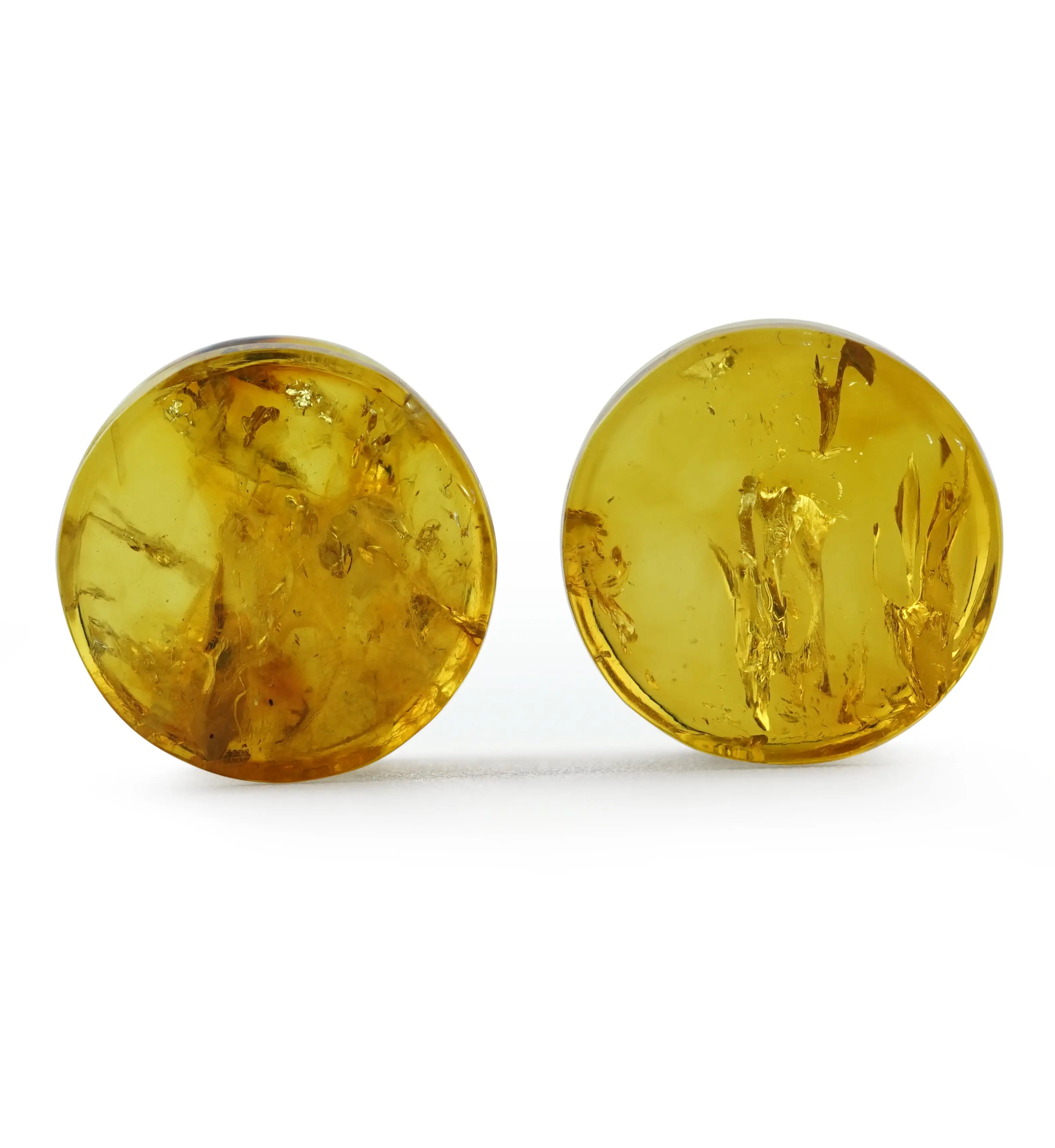 Made from delicate Chiapas amber, these 1/2" (12mm) plugs are sold in pairs and feature a double flare design. With a wearable area of 10.5mm, they are great for healed piercings and will add a unique touch to your collection. Each pair is 100% unique and handcrafted, so each piece will be unique in color and pattern and even size.