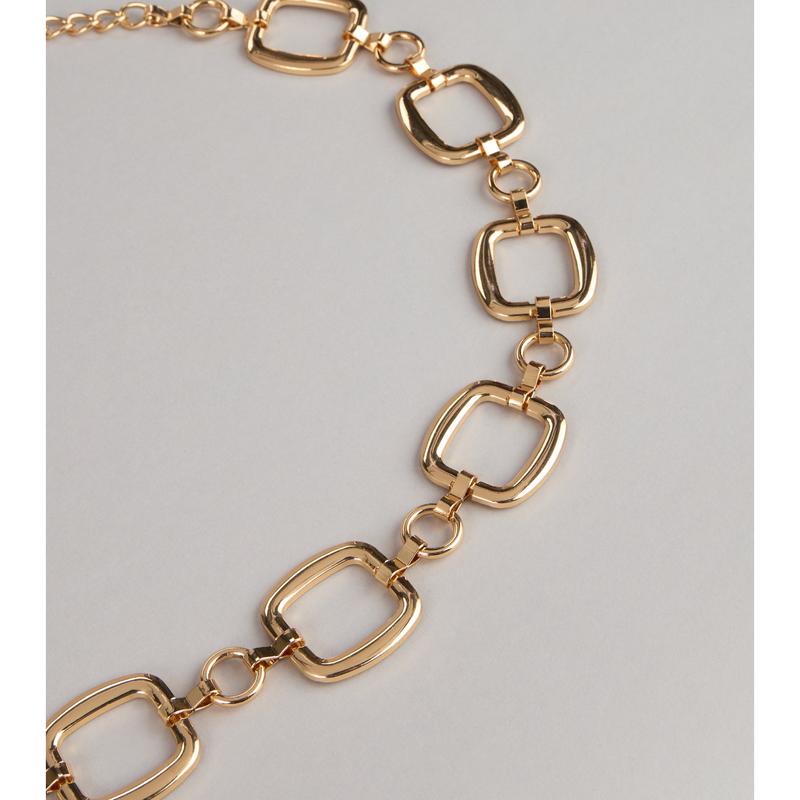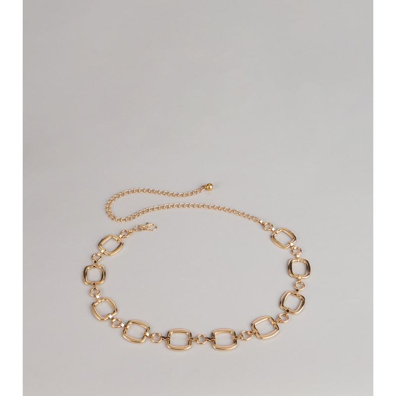 Minimal effort, chic impact. This square chain belt frames your waist with clean lines and a polished finish, making even the simplest outfit feel intentional.