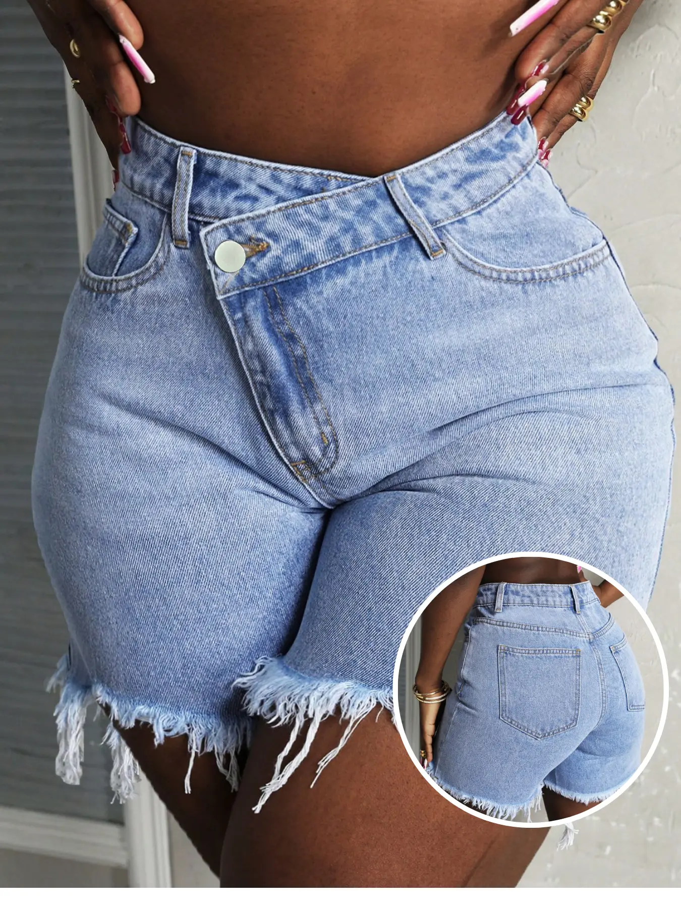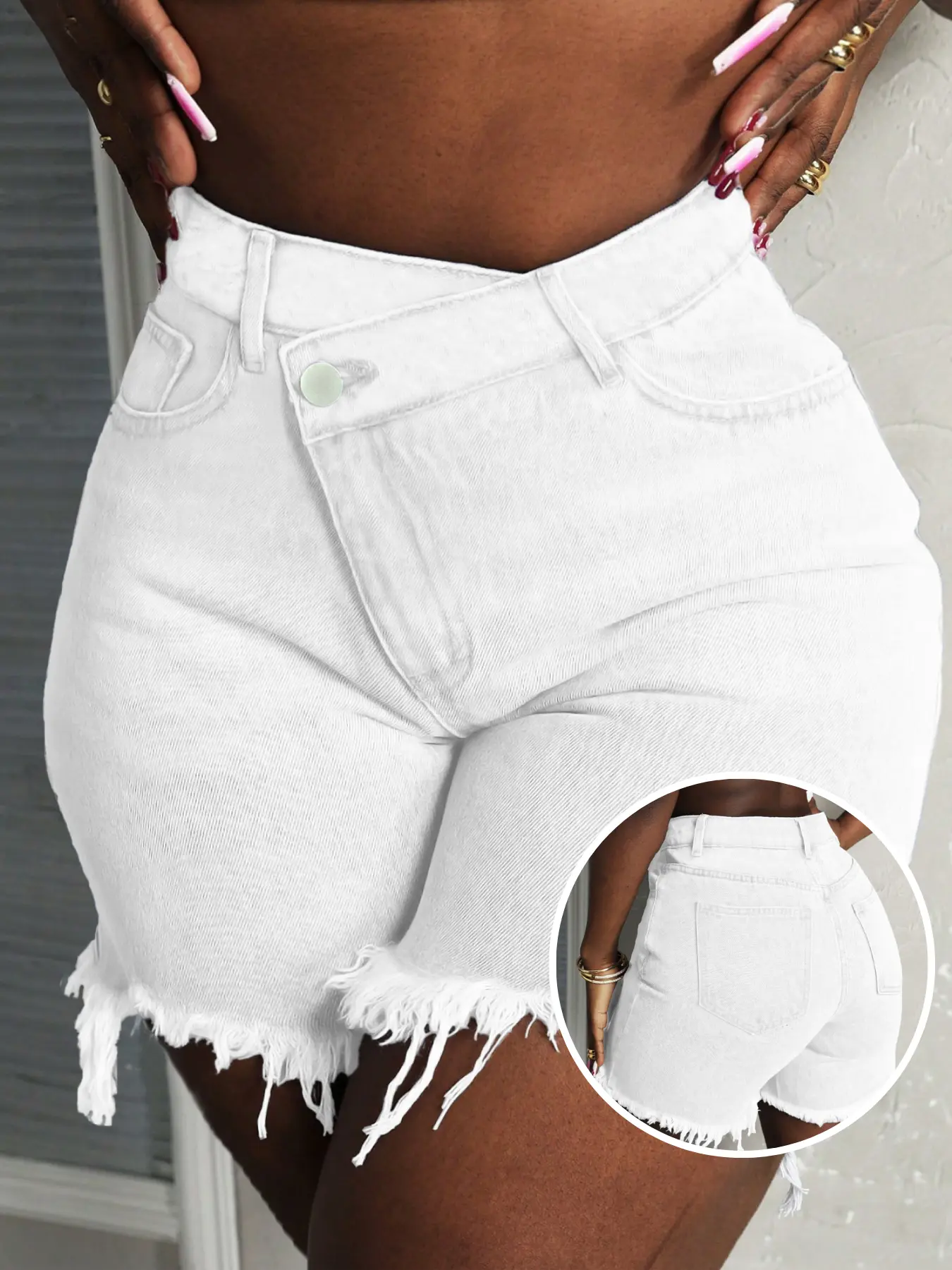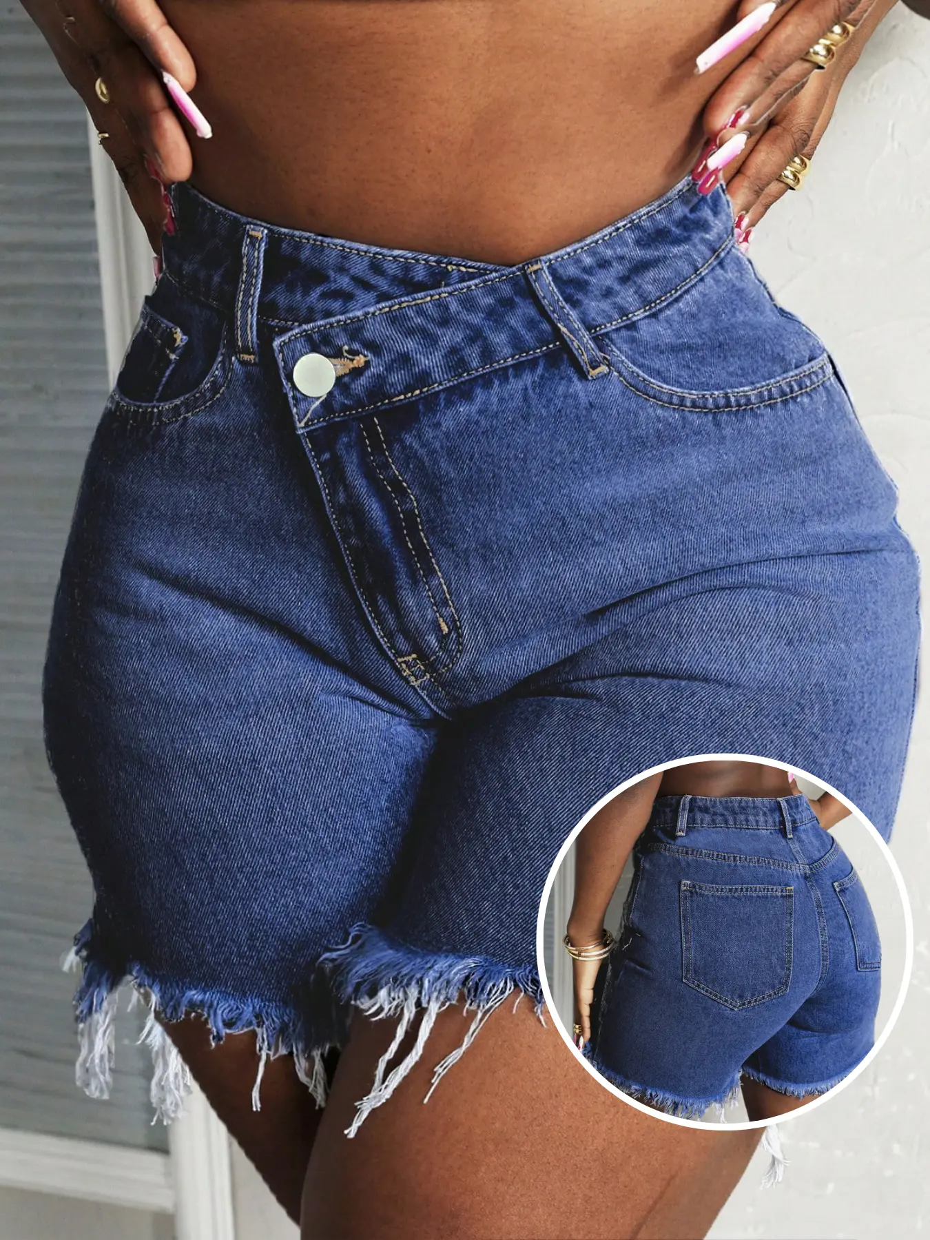 USBoutique Chic Jean Shorts for Women High Waisted Stretchy Casual Denim Shorts Ripped Frayed Hem Summer Trendy Jorts Basic Minimalist Bottoms - Womenswear