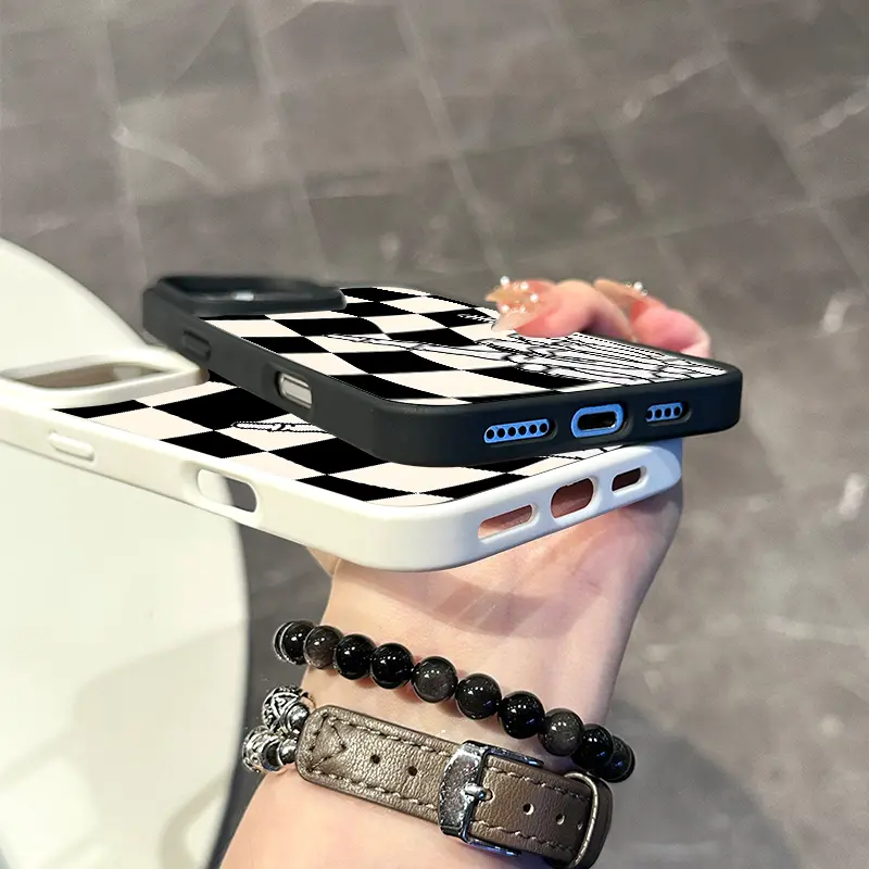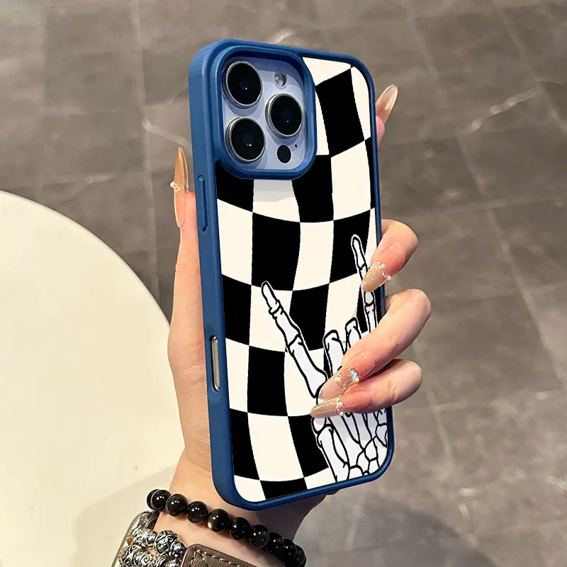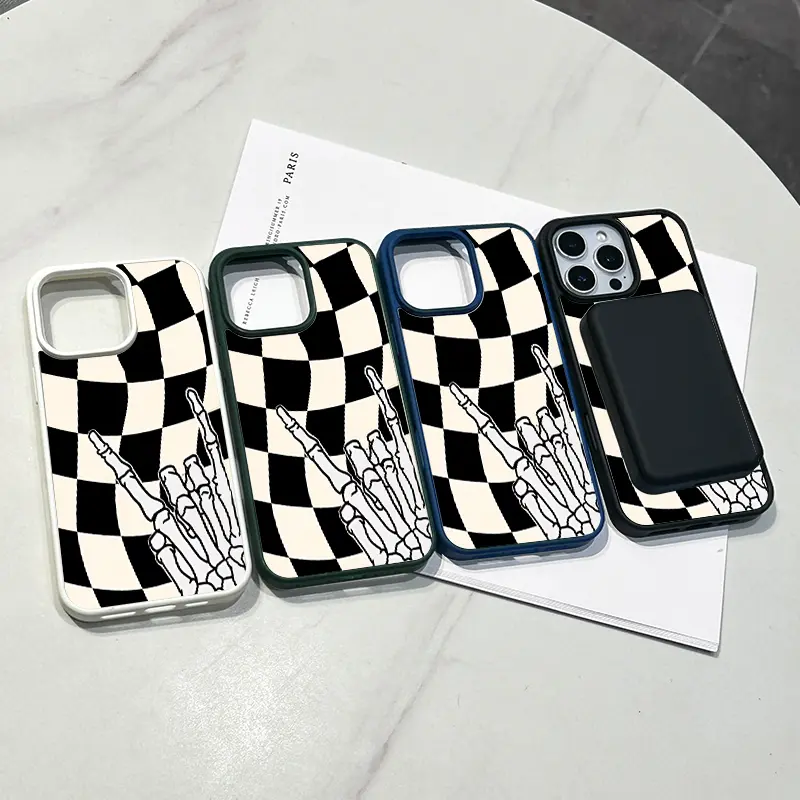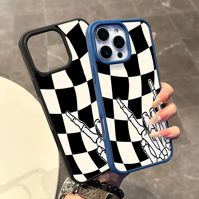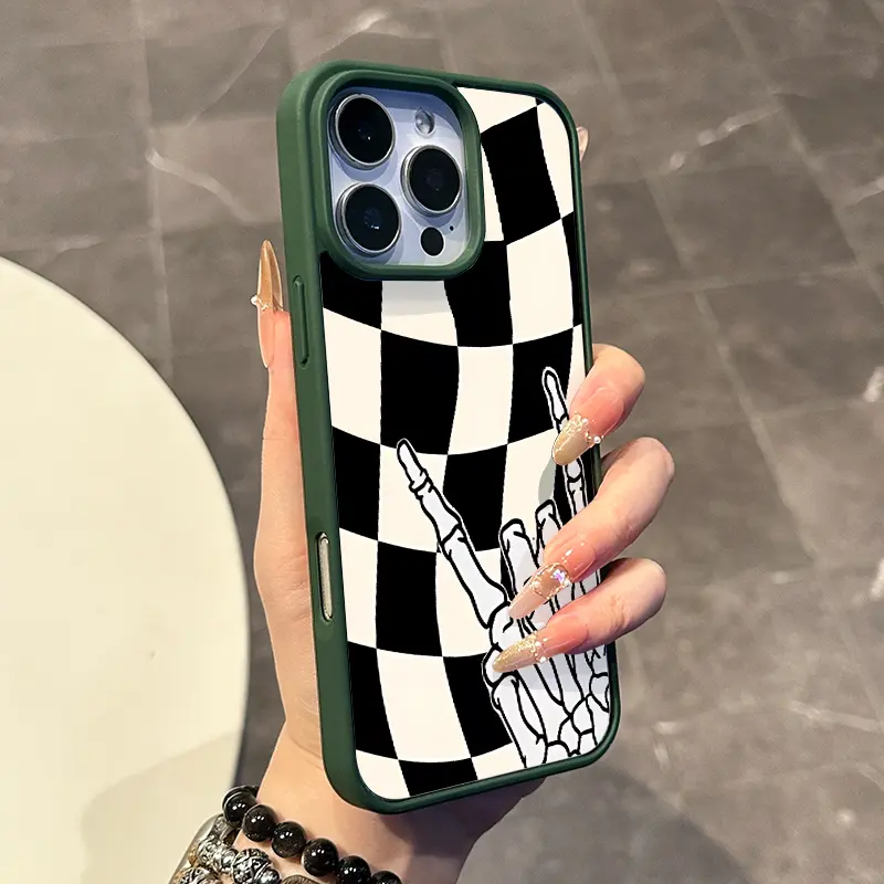 Chic Magnetic Case for iPhone11/12/13/14/15/16/17/promax Skeleton Hand Checkerboard MagSafe Ready, Anti-Slip, Ultra Thin | Aesthetic Touch for Daily Use
