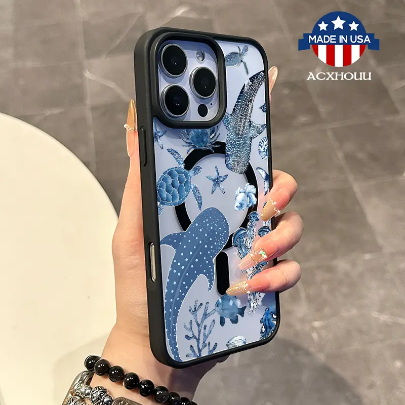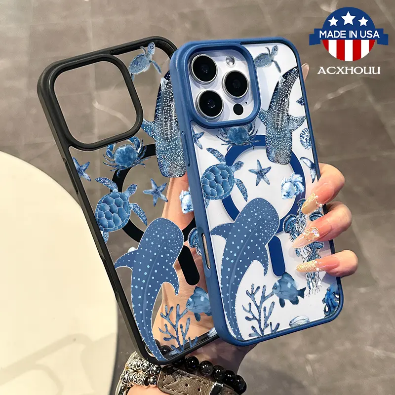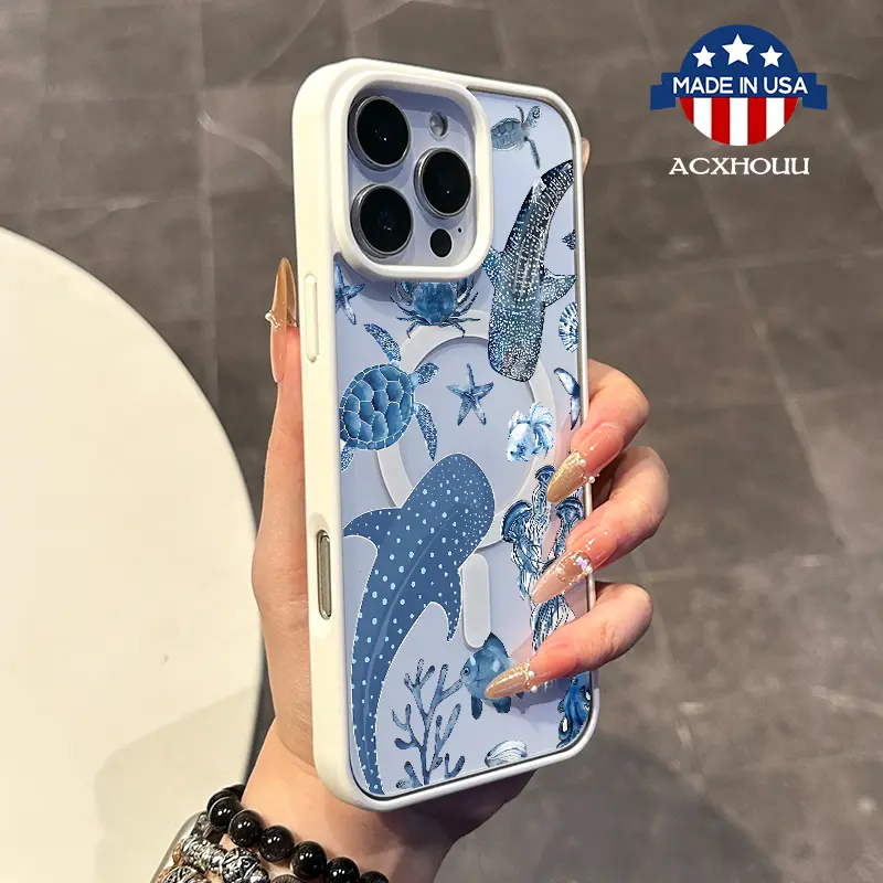 Chic Magnetic Case for iPhone11/12/13/14/15/16/promax whalesshark MagSafe Ready, Anti-Slip, Ultra Thin | Aesthetic Touch for Daily Use