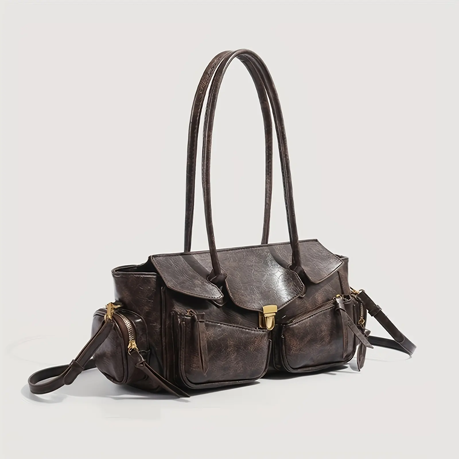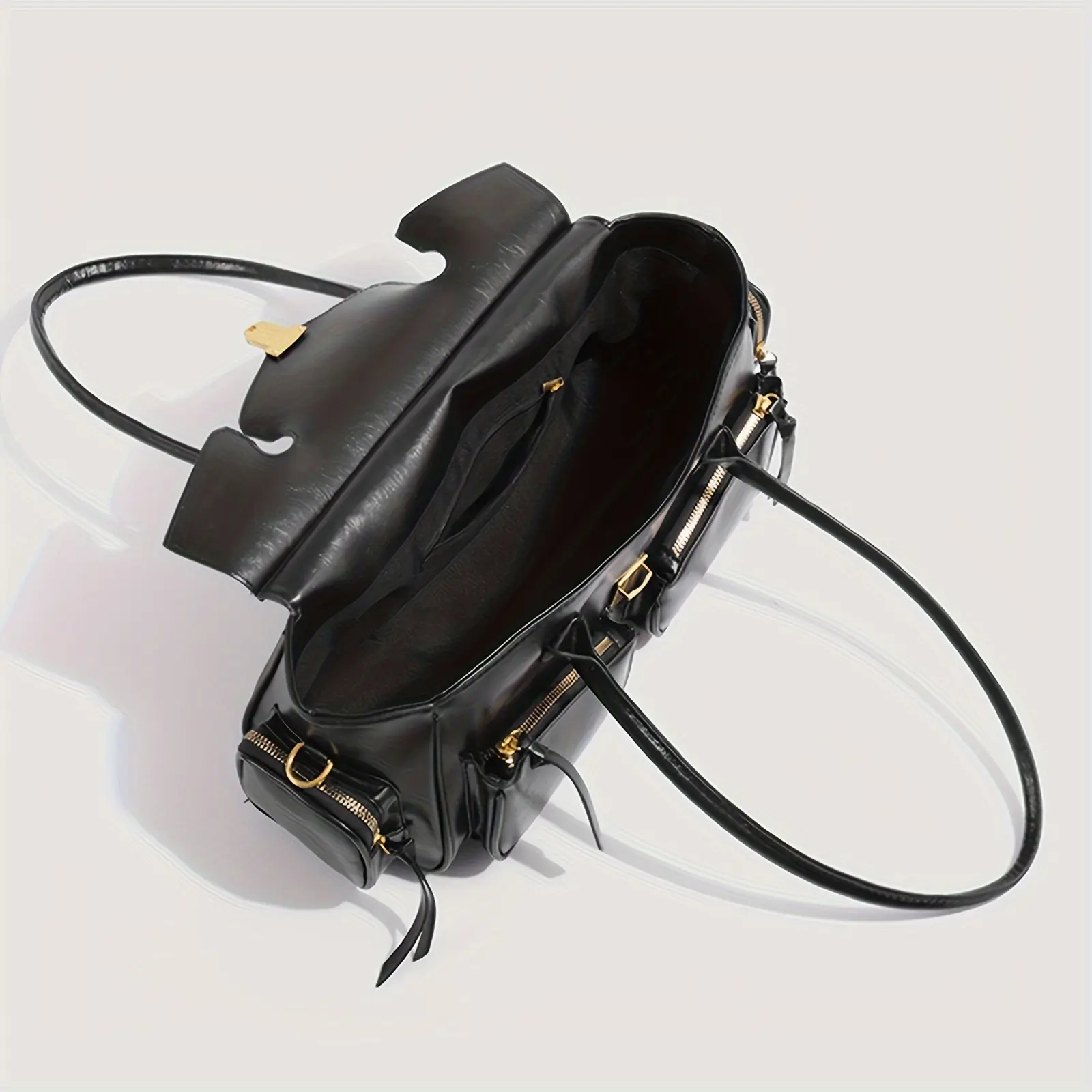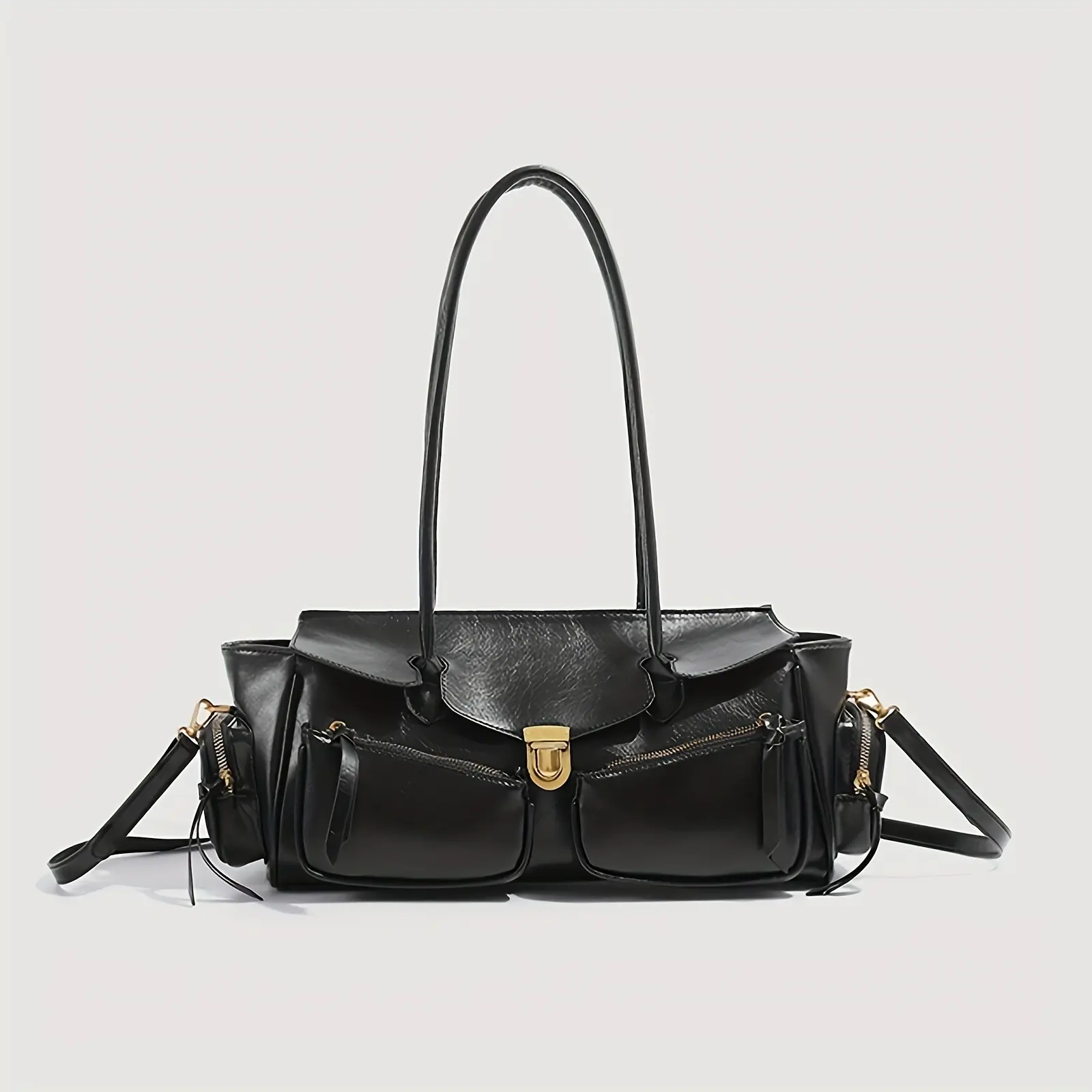 High Quality PU Chic Baguette Bag for Women |Detachable Shoulder Strap & Kiss Lock Closure, Solid Color Versatile Purse for Everyday Fashion Outdoorfun