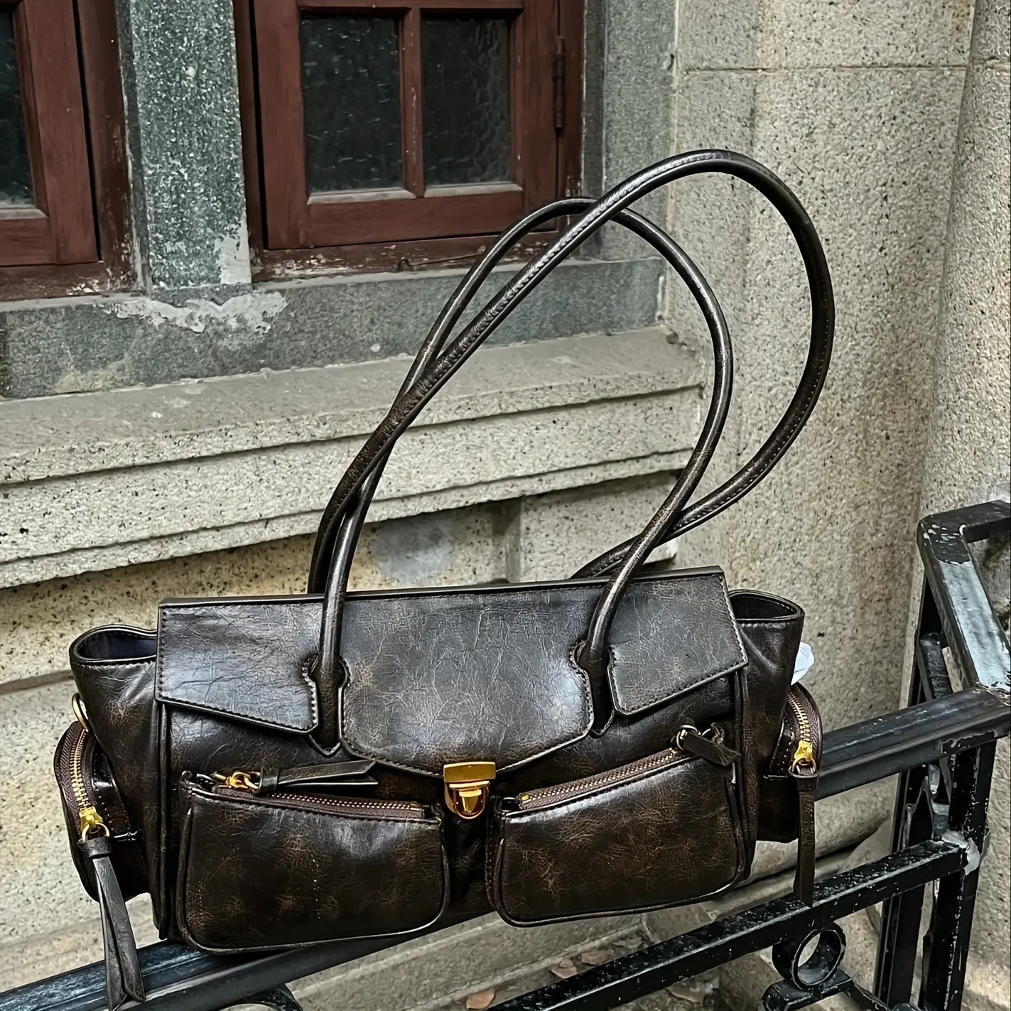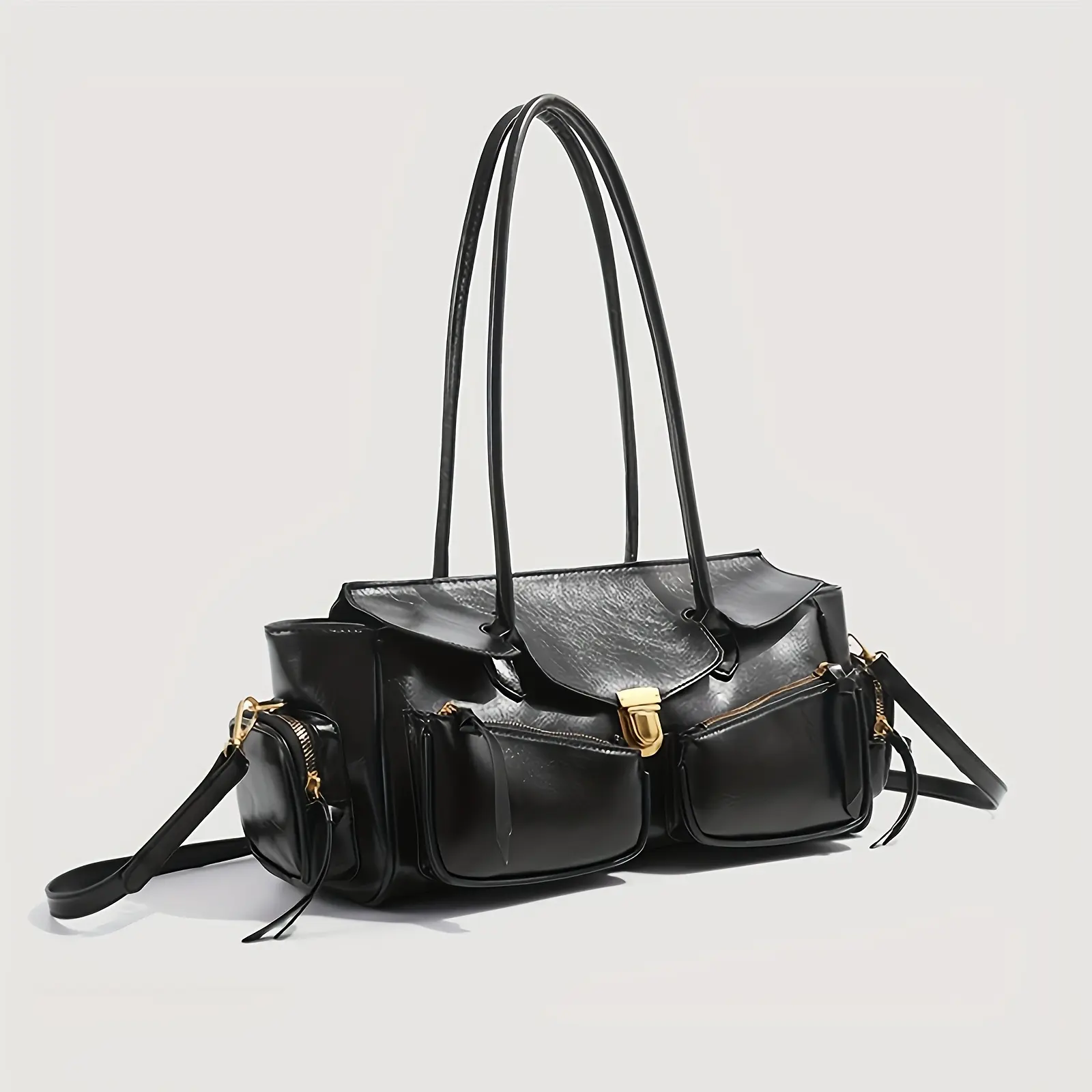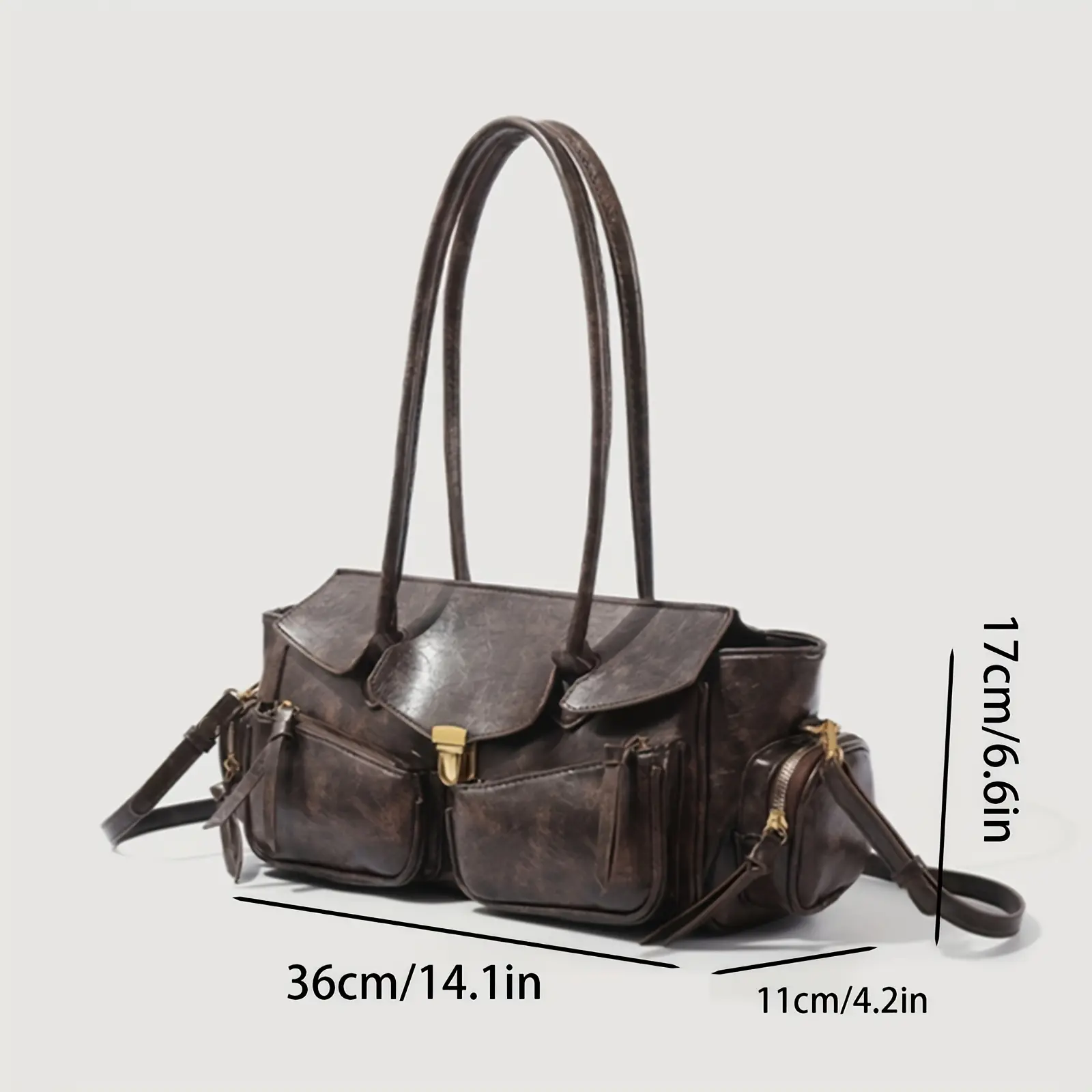 High Quality PU Chic Baguette Bag for Women |Detachable Shoulder Strap & Kiss Lock Closure, Solid Color Versatile Purse for Everyday Fashion Outdoorfun
