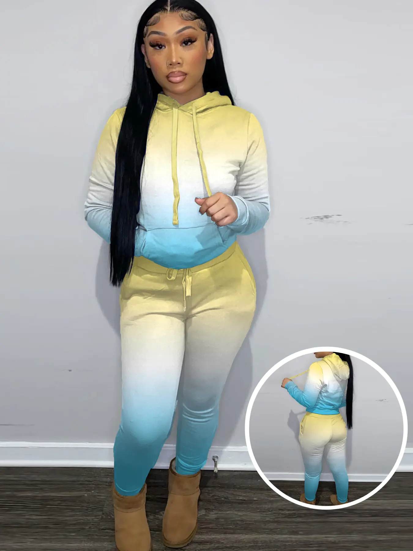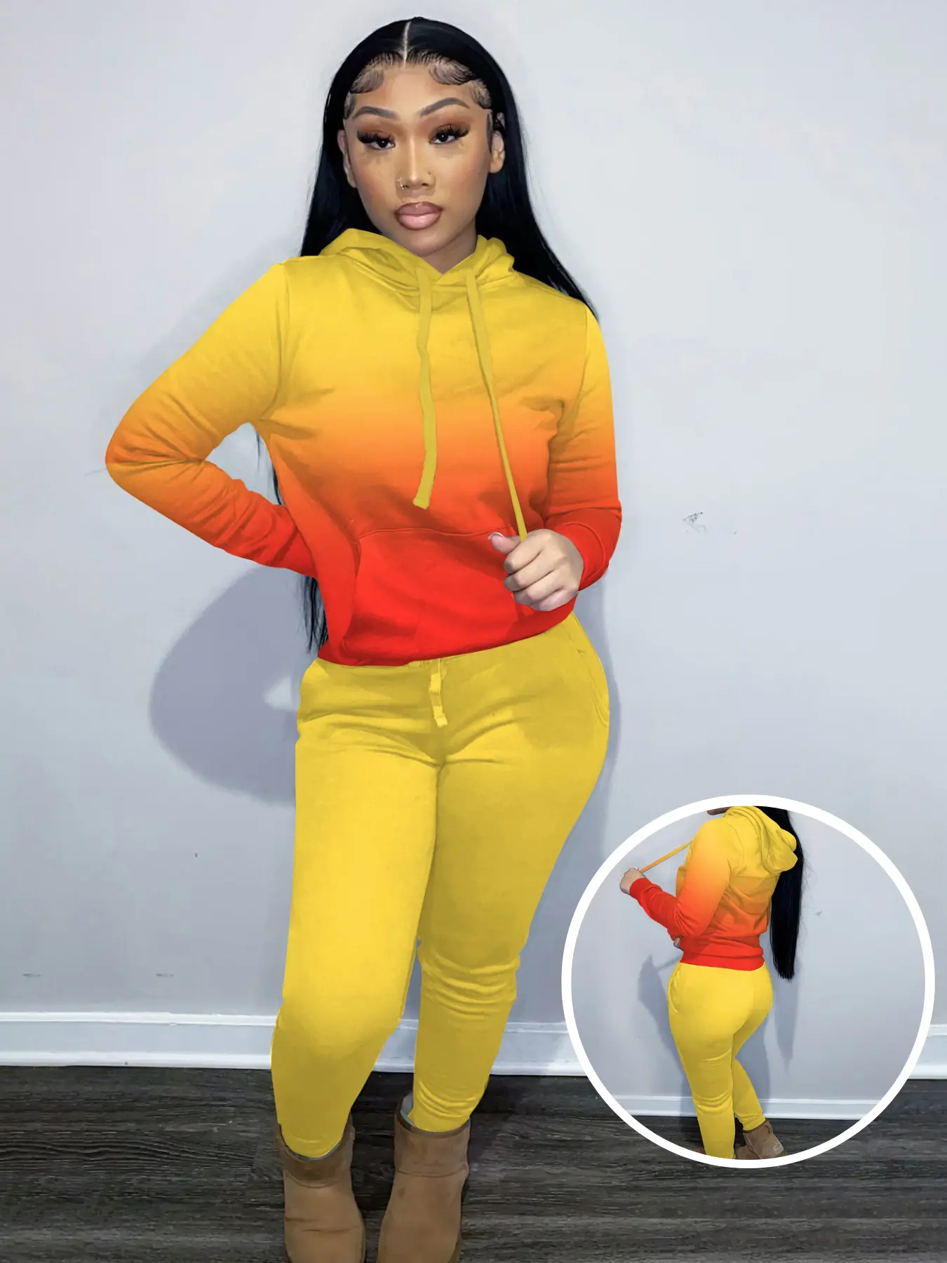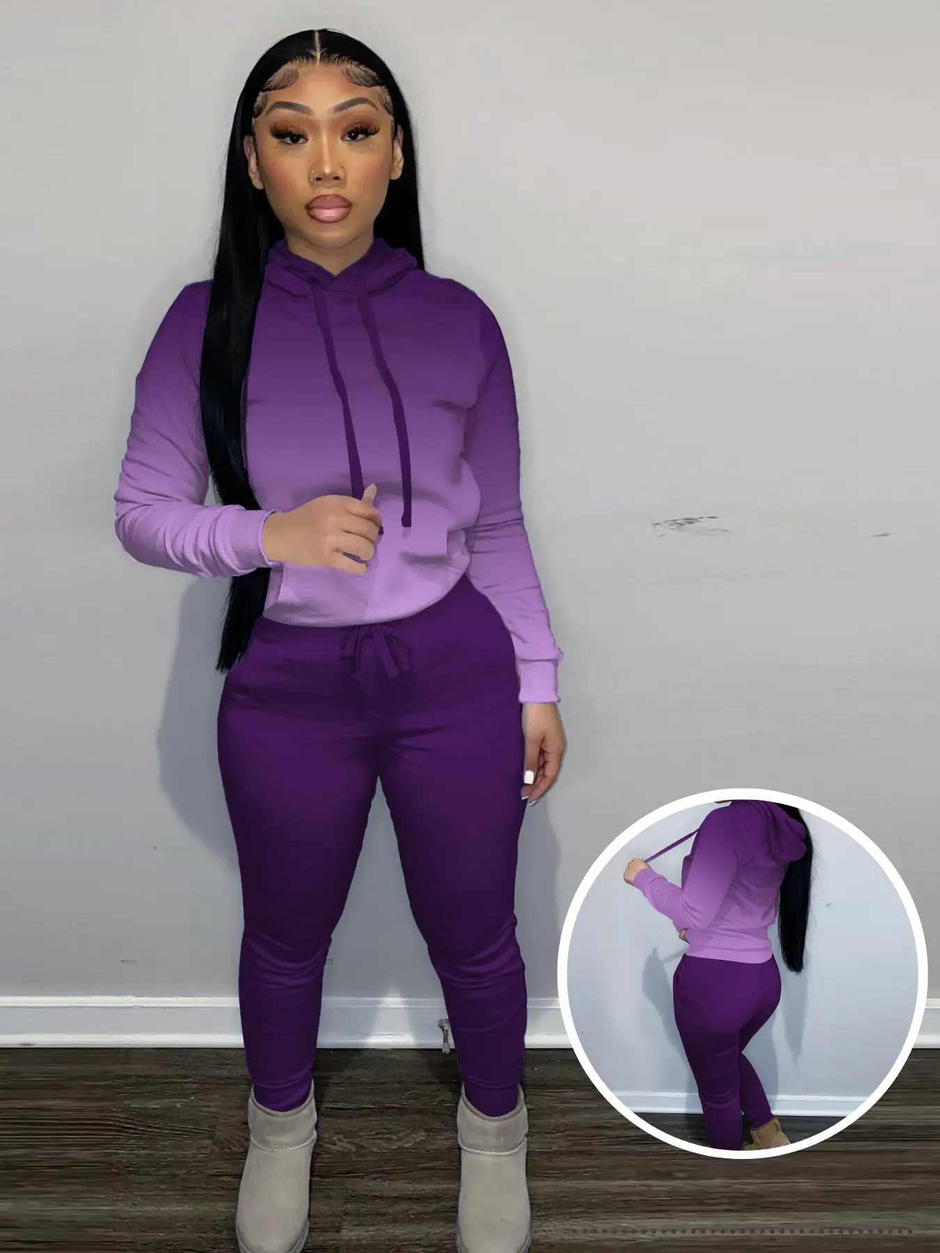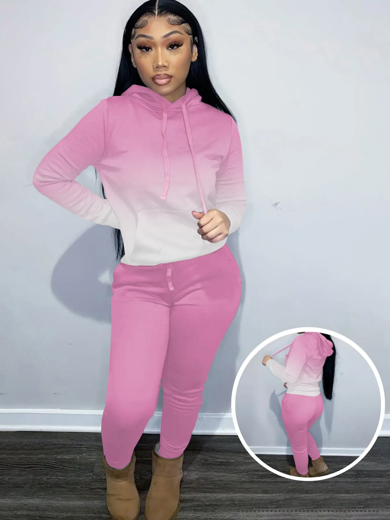 USBoutique Chic Women's Solid Drawstring Hoodie & Pocket Sweatpants Two-piece Set