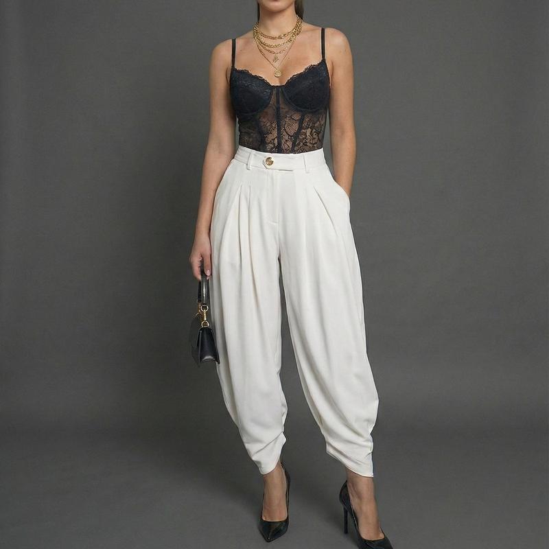 chic flowy curvy pleated baggy trouser pants #flowypants #baggypants #balloonpants #chic #pleatedpants