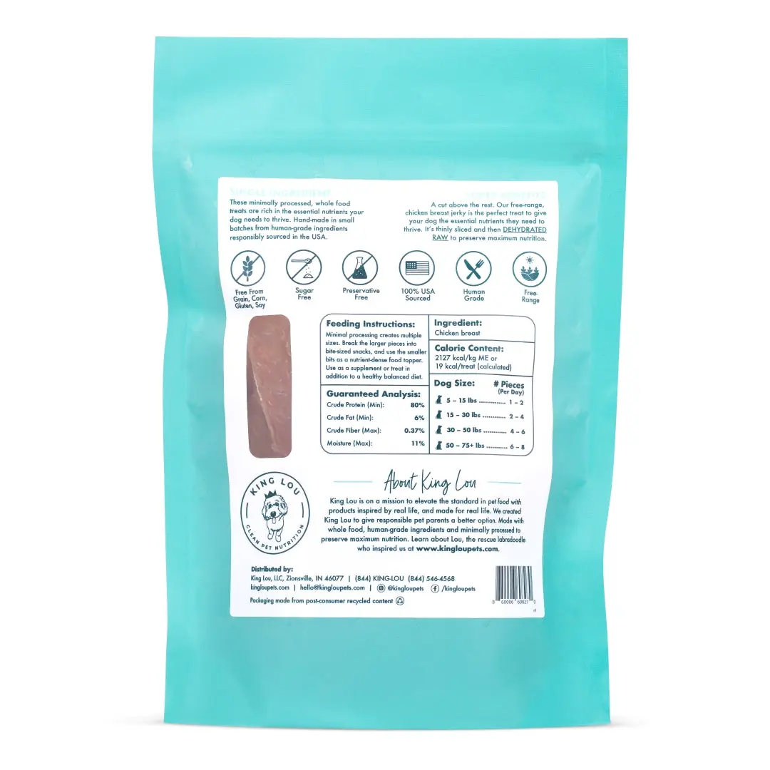 My dog has a sensitive stomach the chicken breast treats by King Lou are the only treats that he loves that won’t upset his stomach. My dog would rate this item 20 out of 10 lol love them so much for him and us to see him happy. Thank you king Lou for your amazing products.