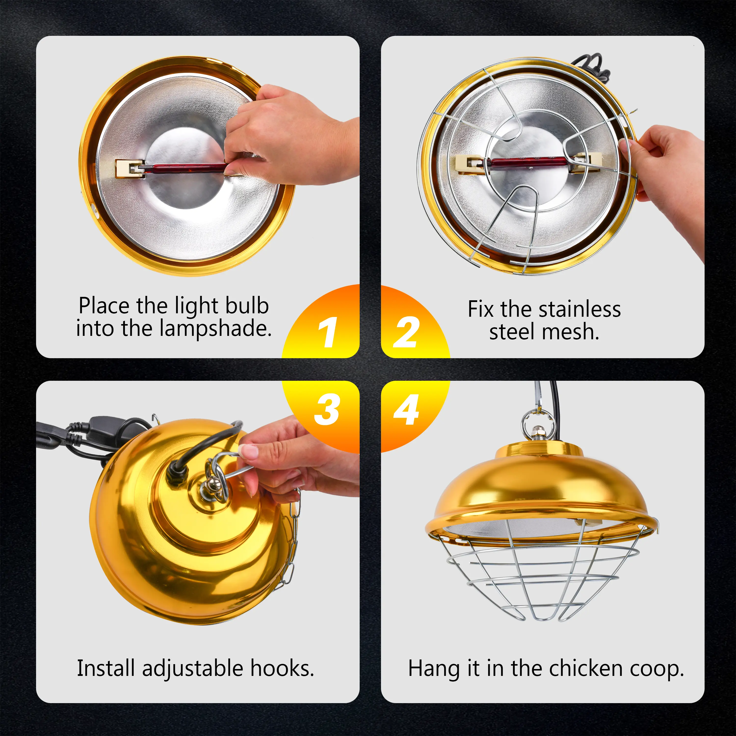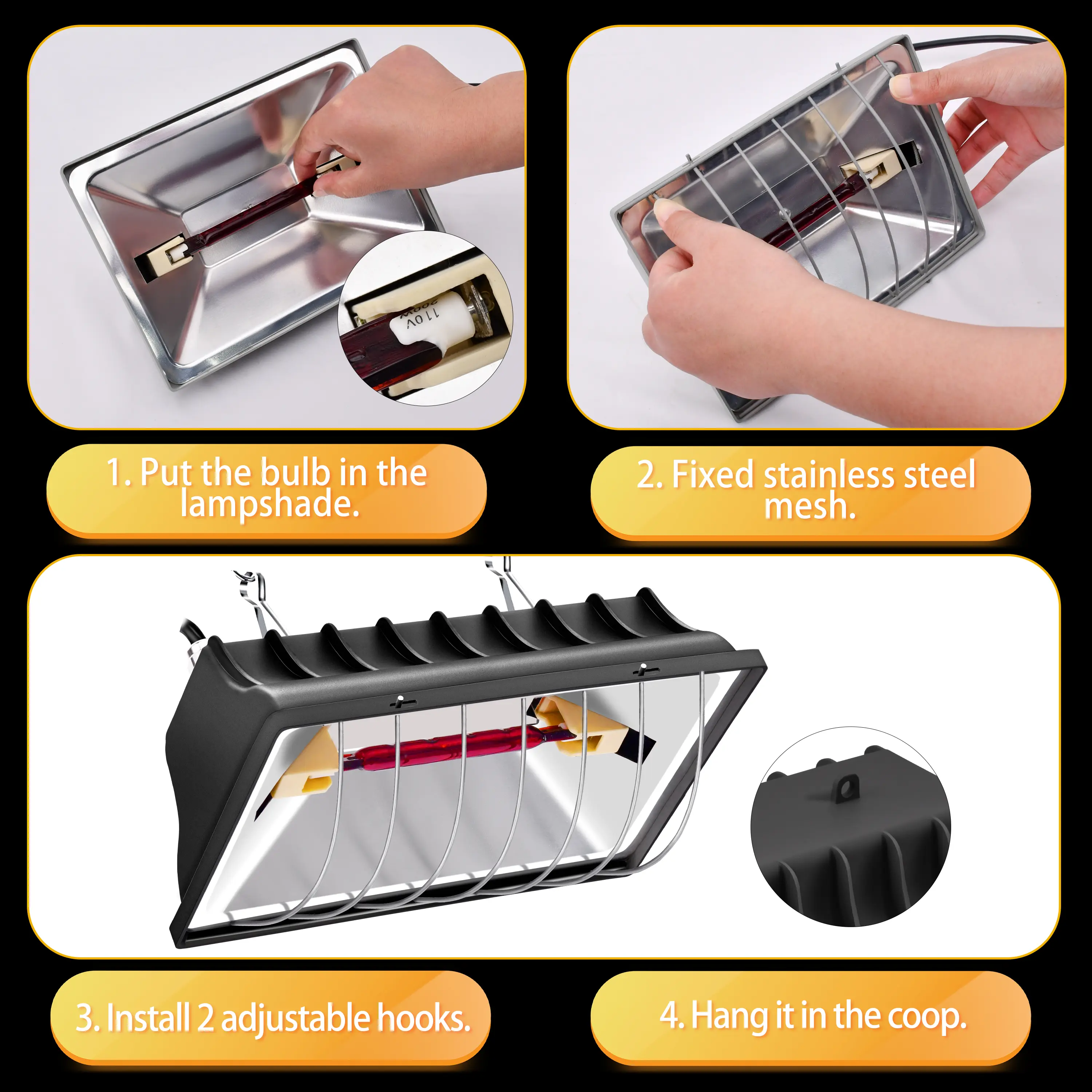 Simple to assemble and adjust—ideal for chicken coops, brooders, or small poultry areas. Warmth that mimics nature, safety that gives you peace of mind, and easy control for perfect comfort—your chicks will absolutely love it!