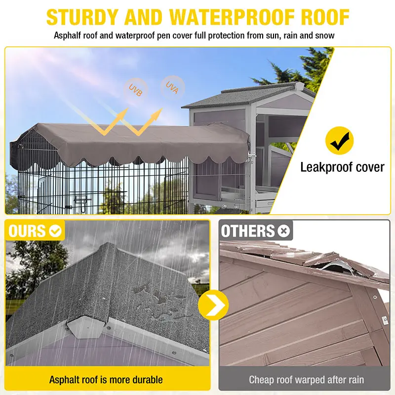 Durable Asphalt Roof-The asphalt-covered roof is designed to withstand all weather conditions, keeping your chickens dry and comfortable. Its slanted design ensures efficient water runoff, preventing any waterlogging issues.