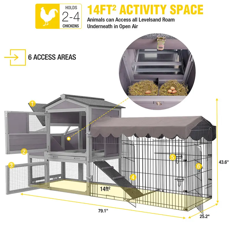 Spacious Metal Run-The attached metal run offers ample space for your chickens to roam and exercise. The run is constructed with heavy-duty metal, providing maximum protection against predators while allowing for excellent ventilation.