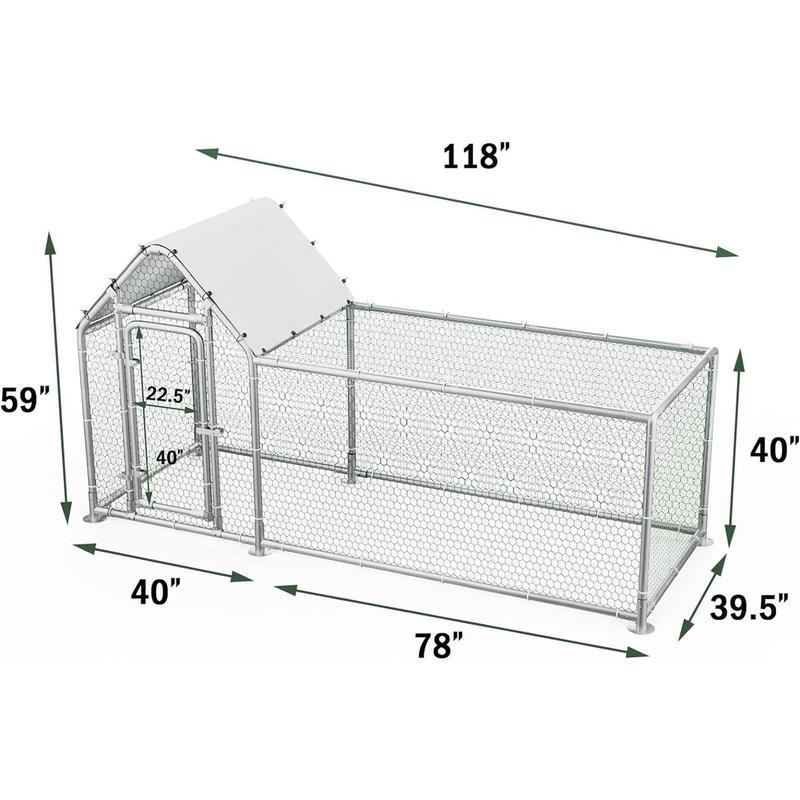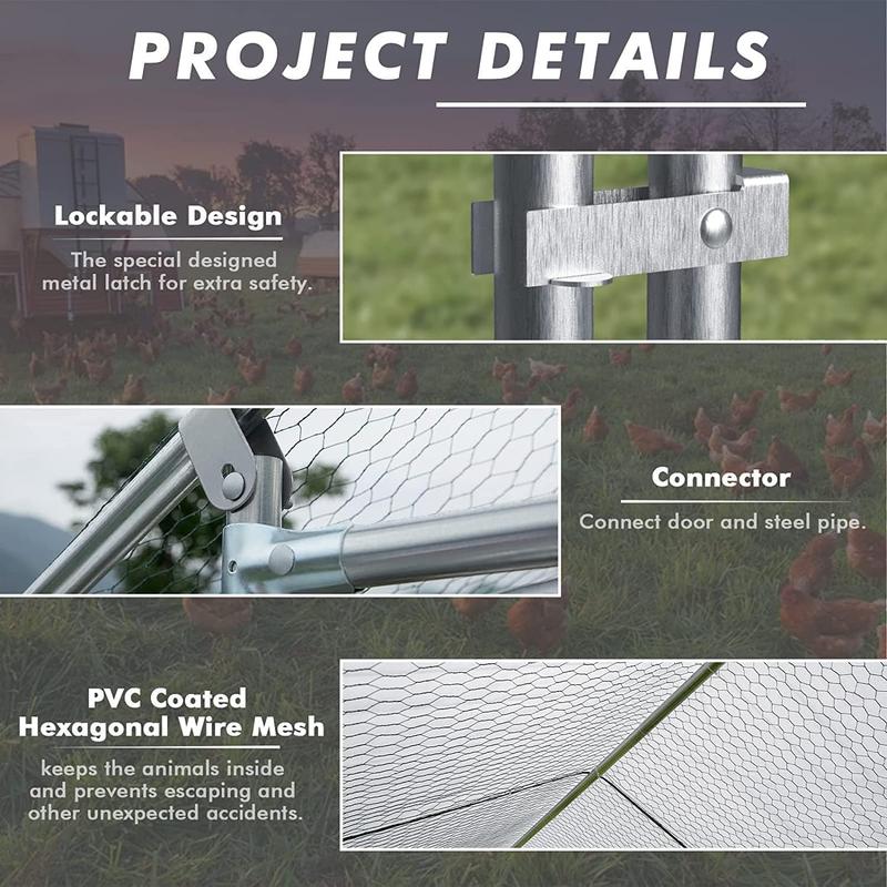·【Durable Steel Chicken run house】:The chicken coop uses a high-quality steel pipe frame, coupled with galvanizing technology, don't worry about rusting in outdoor. The steel pipe diameter reaches 0.98 inches, which is strong and stable enough in windy and heavy rain.