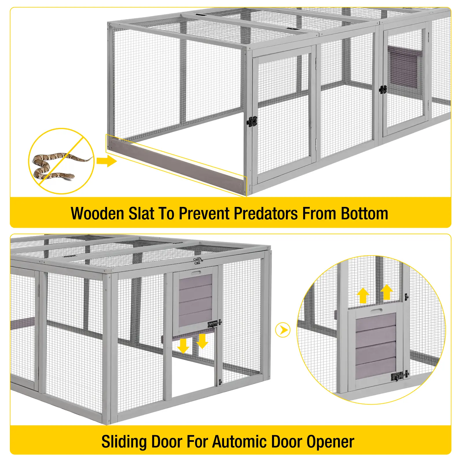 ·An ideal chicken coop extension run with five access doors connected with Aivituvin's chicken coops AIR59, AIR66, AIR67, and AIR69 to create a chicken kingdom (expand an additional 21.80 square feet). You can buy the chicken coop from our store.