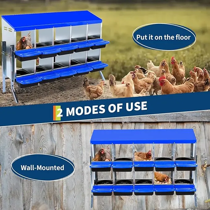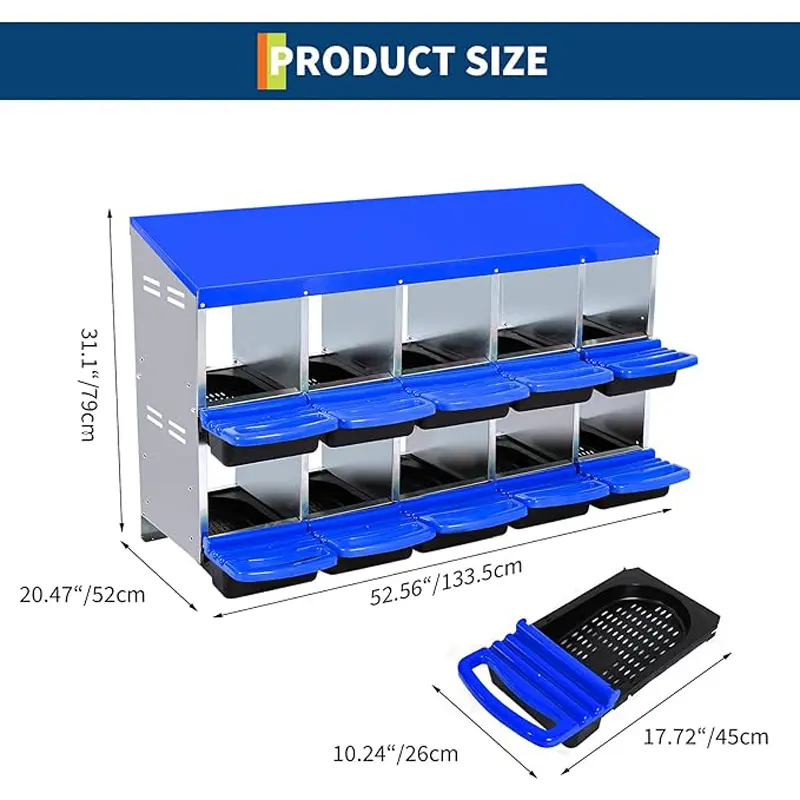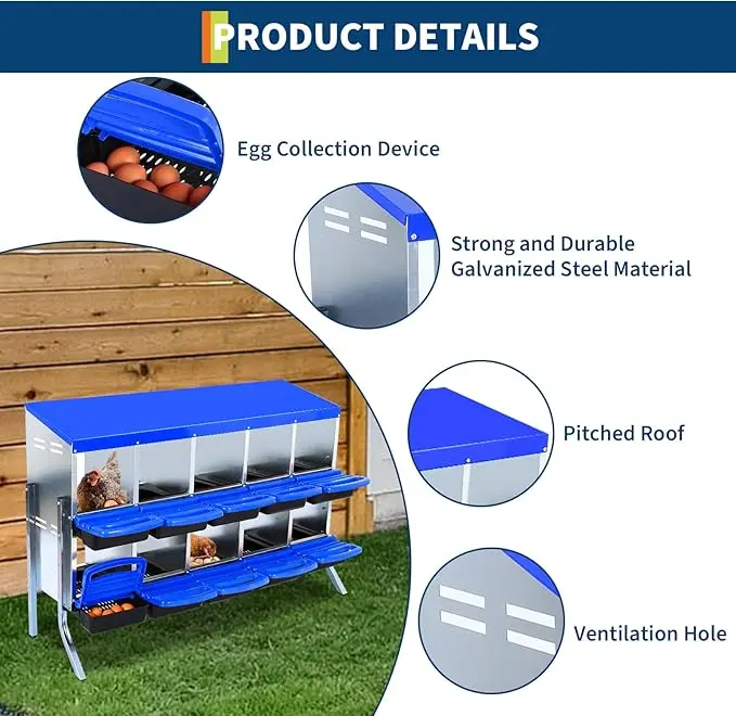 【Durable Galvanised Steel Chicken Nesting Boxes】Crafted from heavy-duty rust-proof galvanised steel, these poultry nesting boxes withstand harsh UK weather. The ventilated sloped roof prevents water accumulation, ensuring a dry, cool laying environment for hens' comfort year-round.