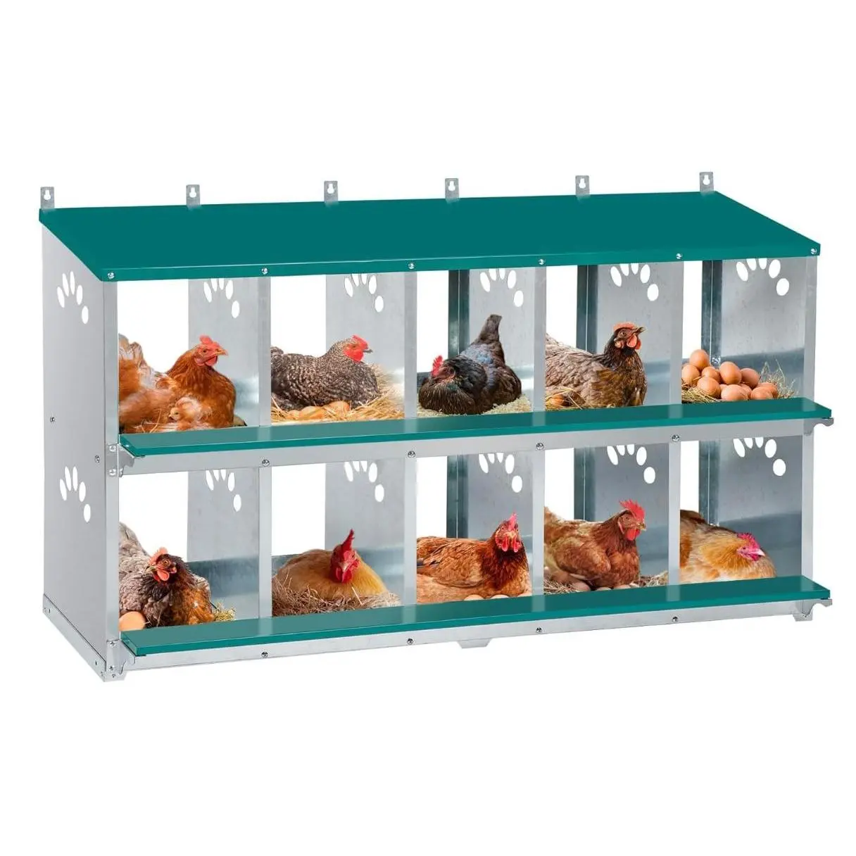 ·Comfort and Hygiene: Perch included for hen comfort, combined with moisture pads for a hygienic nesting environment, promoting healthy egg production.