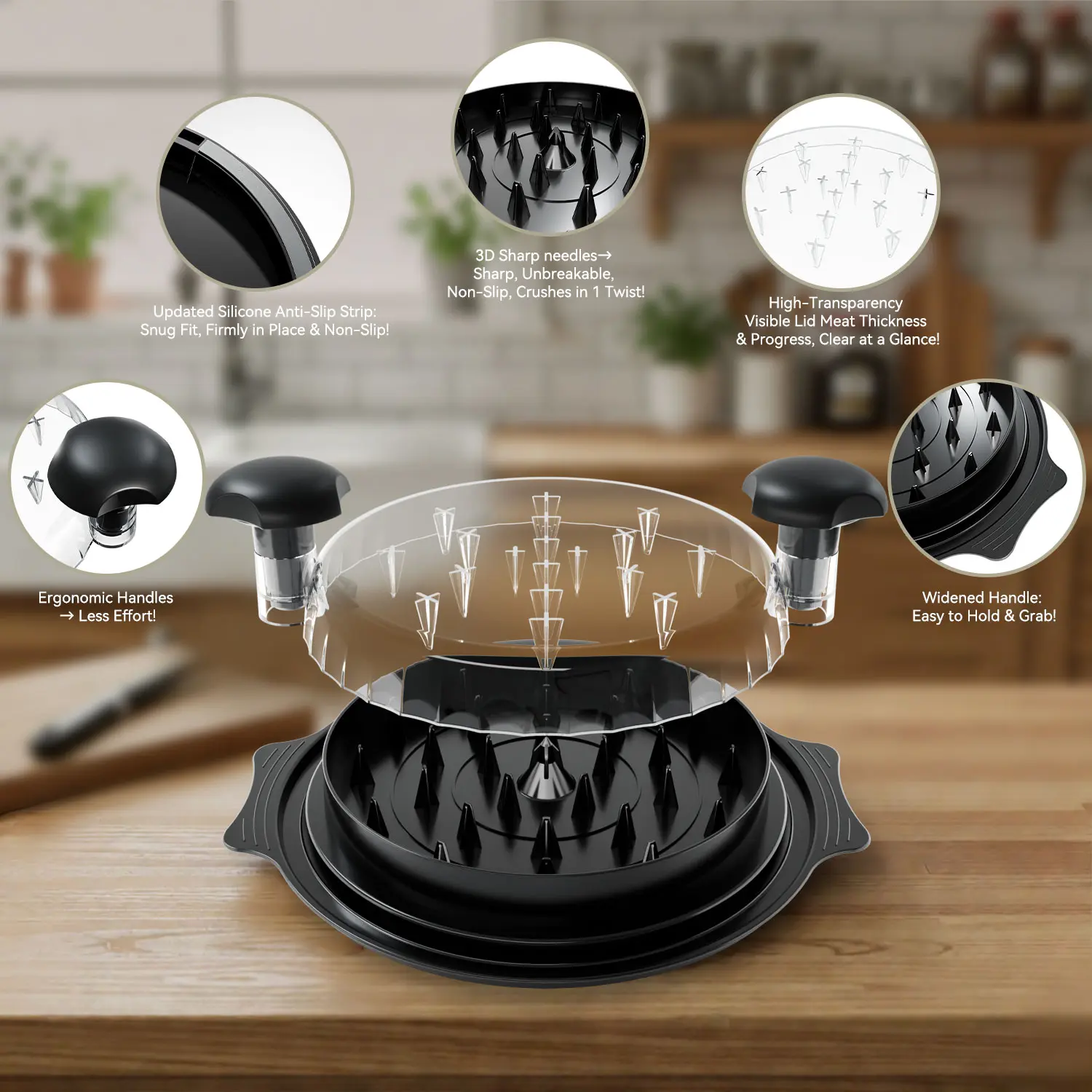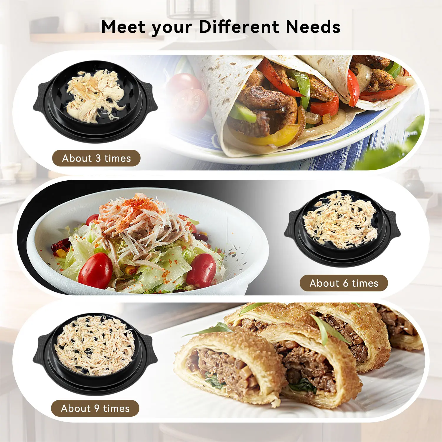 Ā·40% More Efficient: With extra-long prongs, our meat shredder improves efficiency by 40%, letting you shred in fewer twists. The transparent lid helps you adjust the texture, whether you want finely shredded or chunkier meat