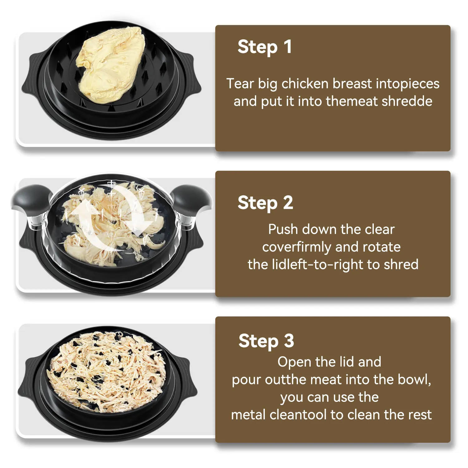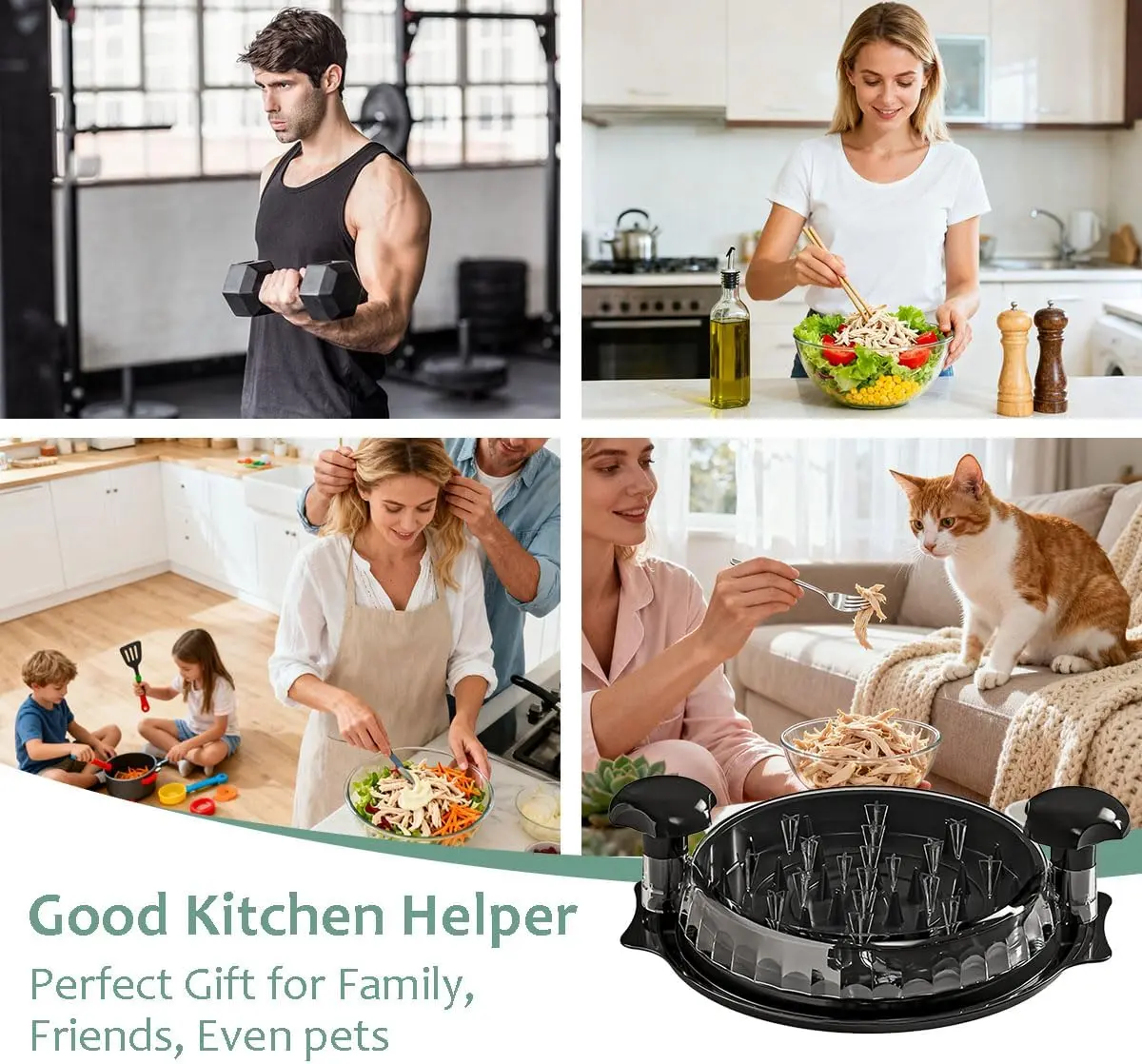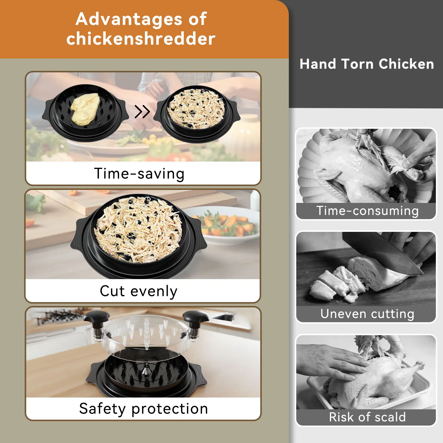 Ā·Stable & Easy to Use: A reinforced anti-slip base keeps the chicken shredder steady, while the ergonomic dual-handle design ensures a secure and comfortable grip for effortless shredding