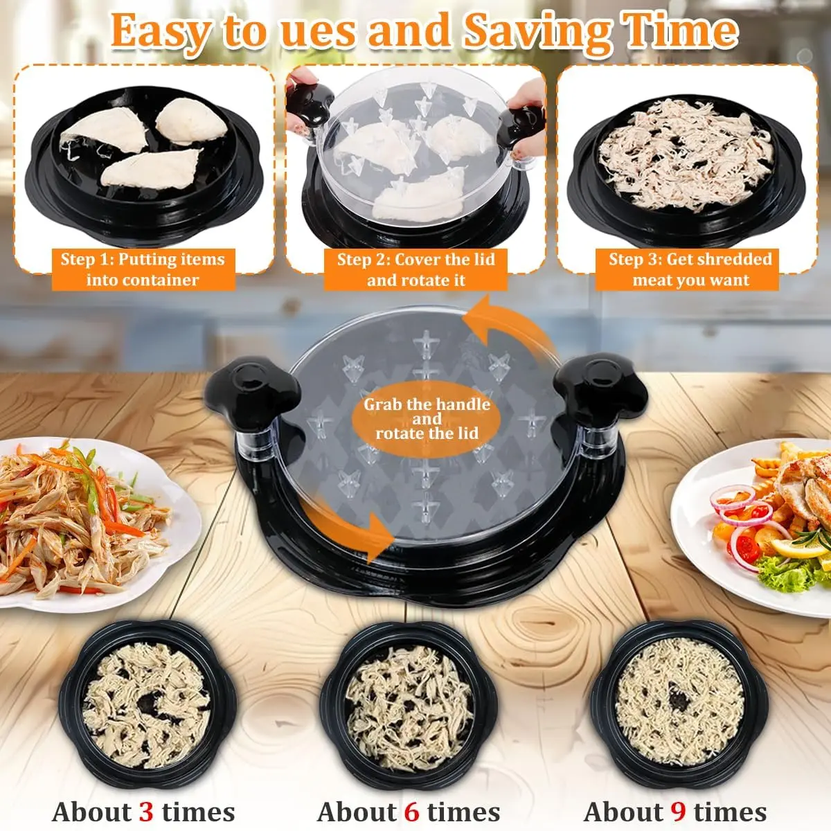 【Transparent Lid】The chicken breast shredder features a transparent lid, allowing you to easily monitor the shredding process while using it. With this clear lid, you can simply twist the shredding knob to adjust the shredding degree to your liking for finer shreds.
