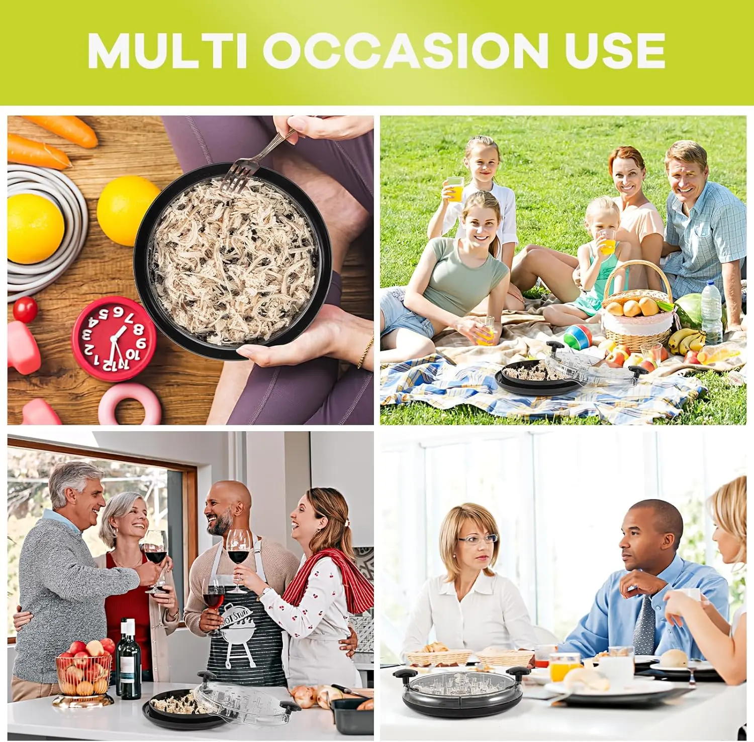 【Efficient Customizable Shredding】 Shred chicken, beef, pork, and vegetables in seconds! Our upgraded design allows you to easily adjust the shredding degree to your needs—from coarse to fine. Save time and get quick results in a busy kitchen.