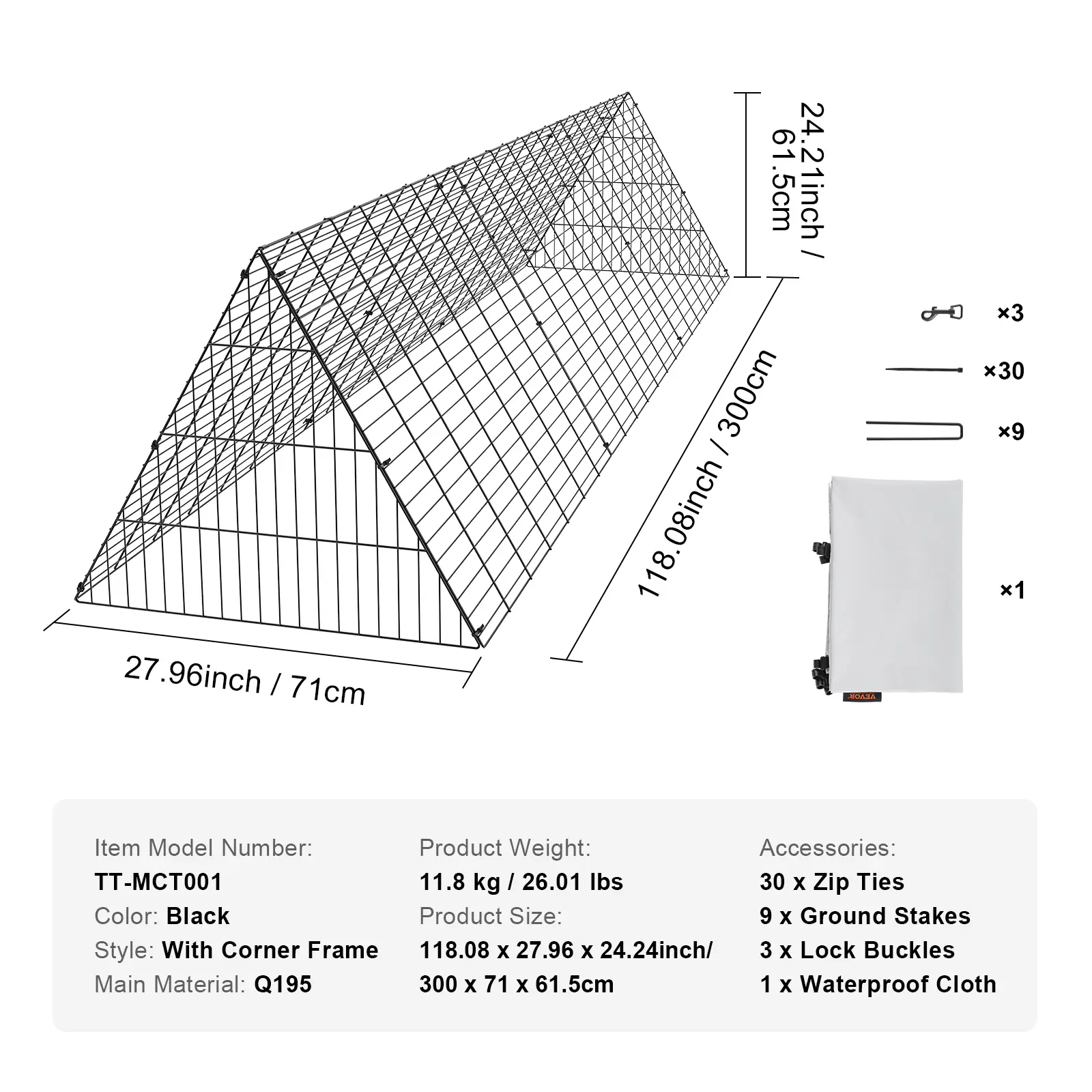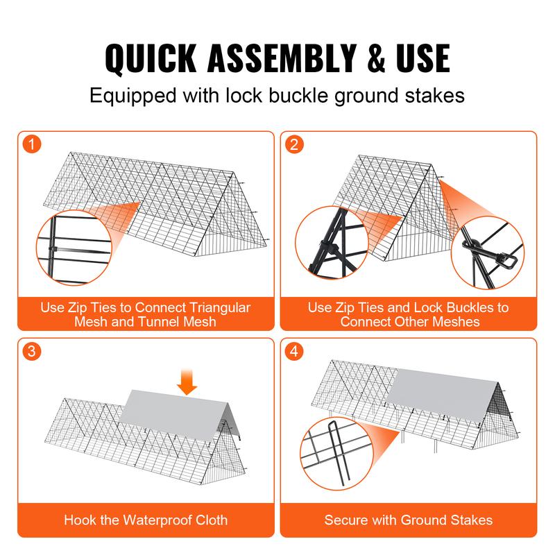 • Portable & Large Activity Area: Still worrying about your chicken ruining your vegetable garden? VEVOR chicken tunnel enclosure will protect them from your garden, and they can freely run back and forth. Providing a wide activity area measuring 28" width and 24.2" tall, the VEVOR chicken tunnel offers poultry greater freedom. With a free-range lifestyle ensuring healthy growth, ample space allows them to enjoy a more natural environment.