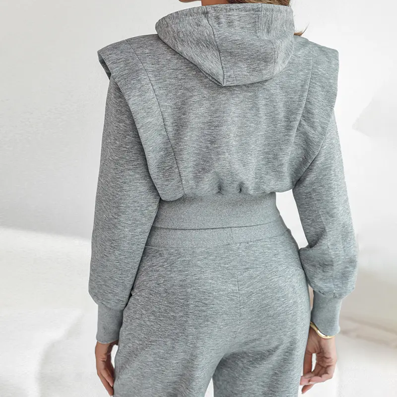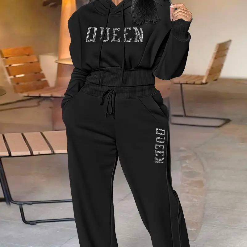 ·Silhouette & Fit: The cropped hoodie and wide-leg sweatpants create a relaxed, flattering silhouette, ideal for casual, everyday wear.