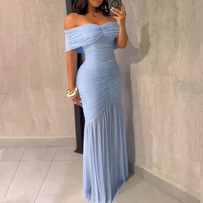 ·Off shoulder neckline – Highlights collarbones and shoulders for a flattering, elegant look suited for formal evening events.