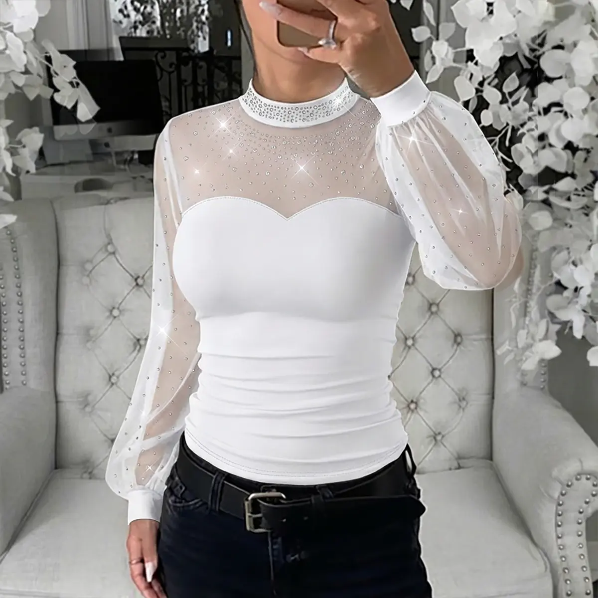 Muy elegante tela pegada al cuerpo nos hase pronunciar la cintura hermosa blusa