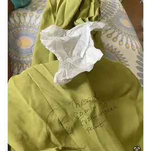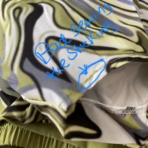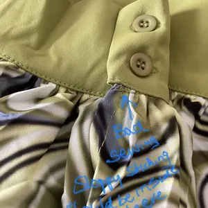 Very disappointed, bad stitching, The sleeve the button hole is lower than the button cannot button around the sleeve stitching outside the band of green instead of inside strings outside of the pants bad stitching on the neck and the other sleeve has bad stitching also outfit Wrinkled